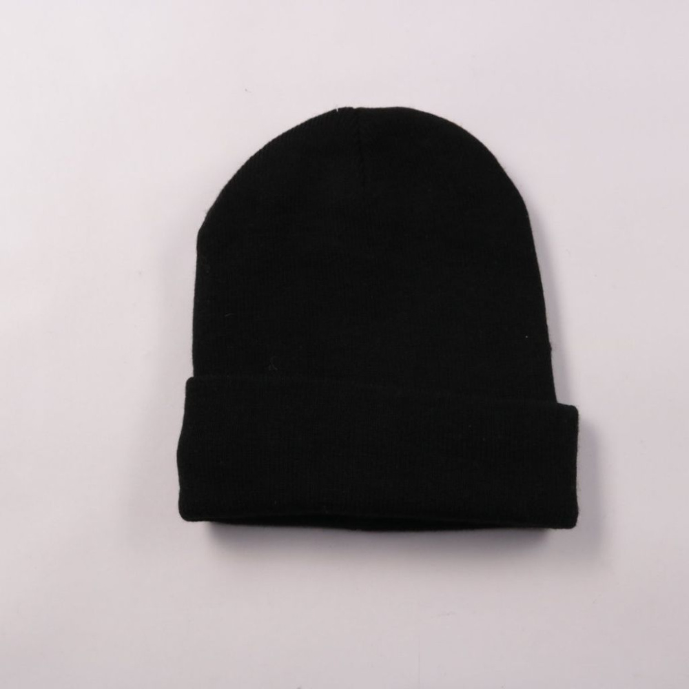 Вязаная шапка без бренда, чёрного цвета, с отворотом. Подойдёт для повседневной носки в холодную погоду и легко сочетается с любой верхней одеждой. Практичный акриловый материал быстро сохнет и не требует сложного ухода.