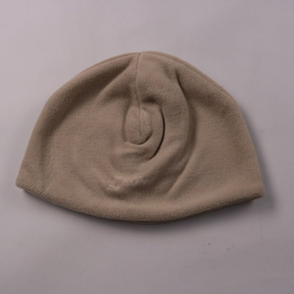 Флисовая шапка бежевого цвета без видимого бренда. Подойдёт для прогулок и повседневной носки в прохладную погоду. Лёгкая и быстро сохнет, удобно помещается в карман или рюкзак.