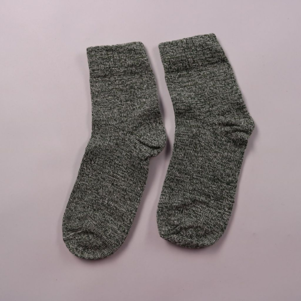 Серые вязаные носки без видимого бренда, средней длины. Подойдут на каждый день дома или под закрытую обувь в прохладную погоду. Плотная вязка помогает ногам оставаться в тепле.