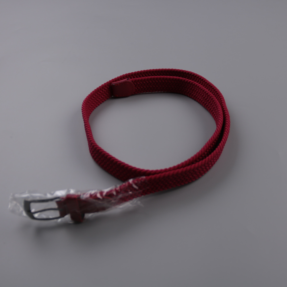 Текстильный плетёный ремень без бренда в бордовом цвете с металлической пряжкой. Подойдёт к джинсам и повседневным брюкам, хорошо смотрится в casual-образах. Плетение удобно тем, что ремень можно застегнуть на любой комфортный объём без фиксированных о...