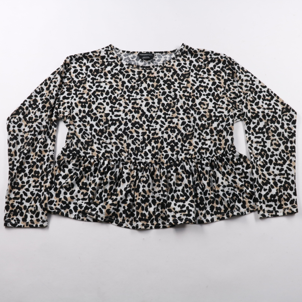 Блузка Wednesday's Girl с леопардовым принтом и баской, рукав длинный. Подойдёт для школы и повседневной носки, хорошо сочетается с джинсами или юбкой. Трикотаж тянется за счёт эластана и не стесняет движения.