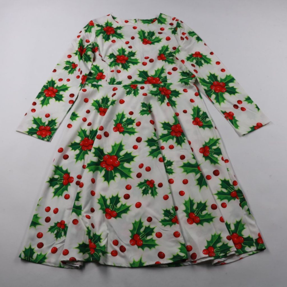 Детское платье с длинным рукавом и ярким принтом (листья и ягоды) на белом фоне. Подойдёт для праздников и повседневных выходов в прохладную погоду с колготками или лосинами. Практичное: ткань с хлопком, легко стирается и быстро сохнет.