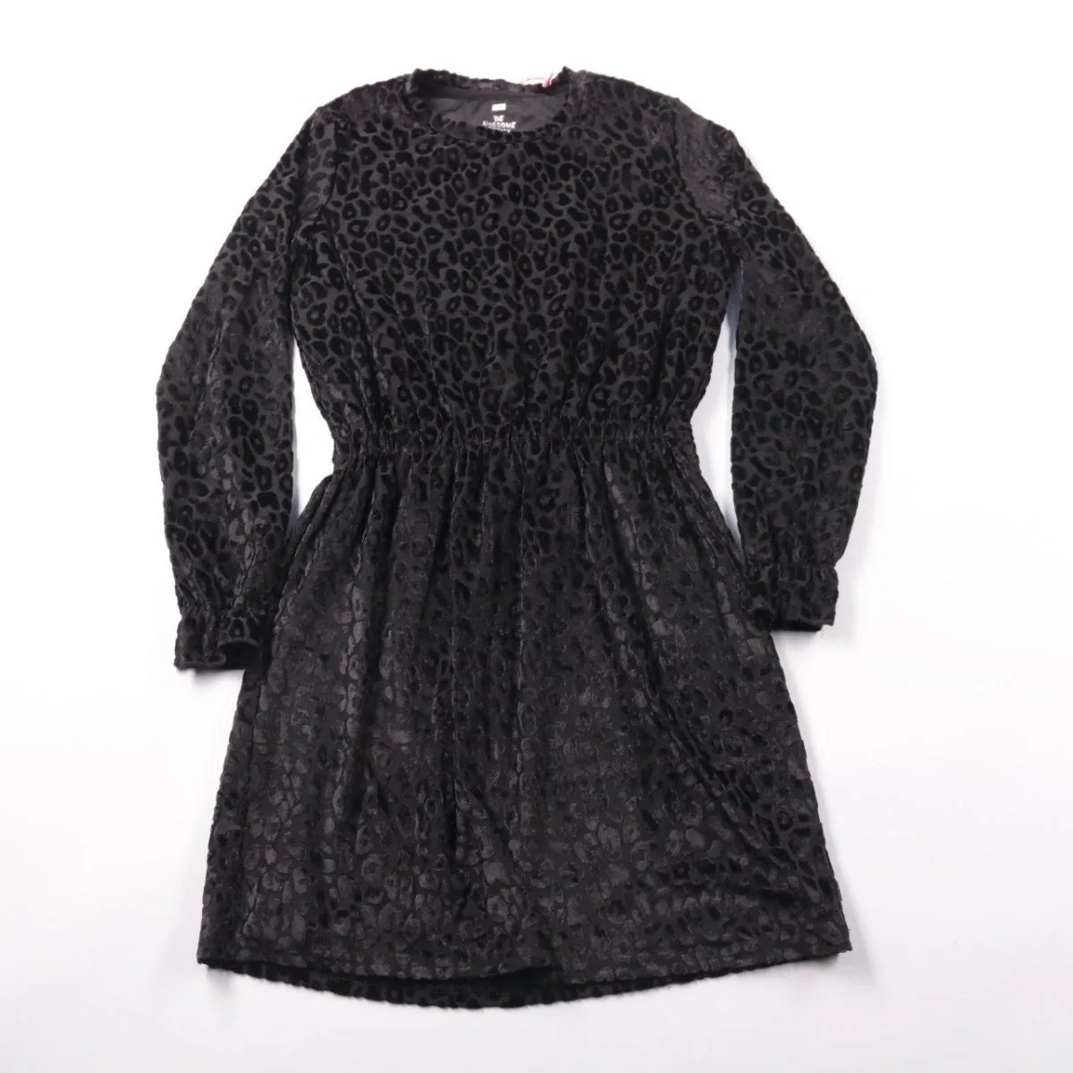 Платье WE для девочки из мягкой ткани с леопардовым фактурным узором и длинным рукавом. Подойдёт для школы, прогулок и праздников в прохладную погоду благодаря удобной резинке на талии. Есть подкладка, поэтому платье комфортно носить и оно лучше держит форму.