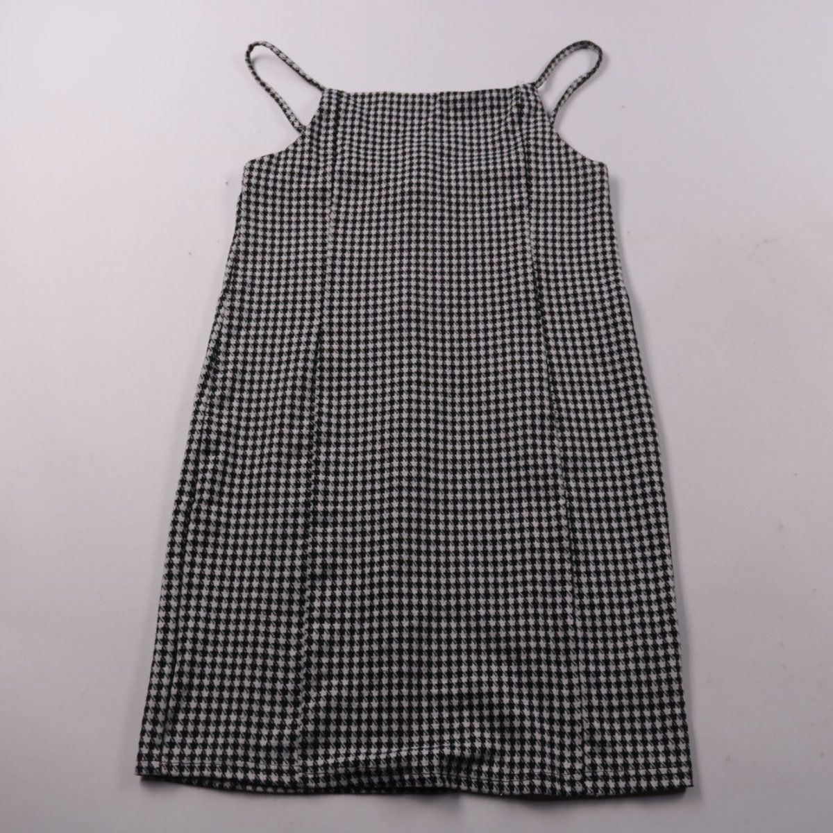 Платье Primark на тонких бретелях с чёрно-белым принтом «гусиная лапка». Подойдёт для летних прогулок и повседневной носки, можно сочетать с футболкой или кардиганом. Лёгкая ткань и простой крой удобны в уходе и носке.