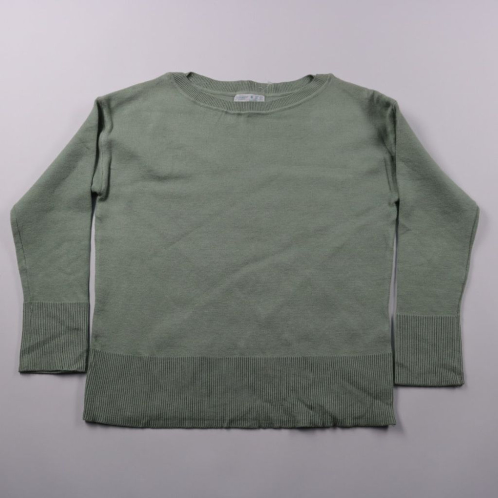 Свитер Primark Cares оливково-зелёного цвета с круглым вырезом и широкими манжетами. Подойдёт для школы и прогулок в прохладную погоду, хорошо сочетается с джинсами и юбками. Практичный трикотаж мягкий и удобный в носке.
