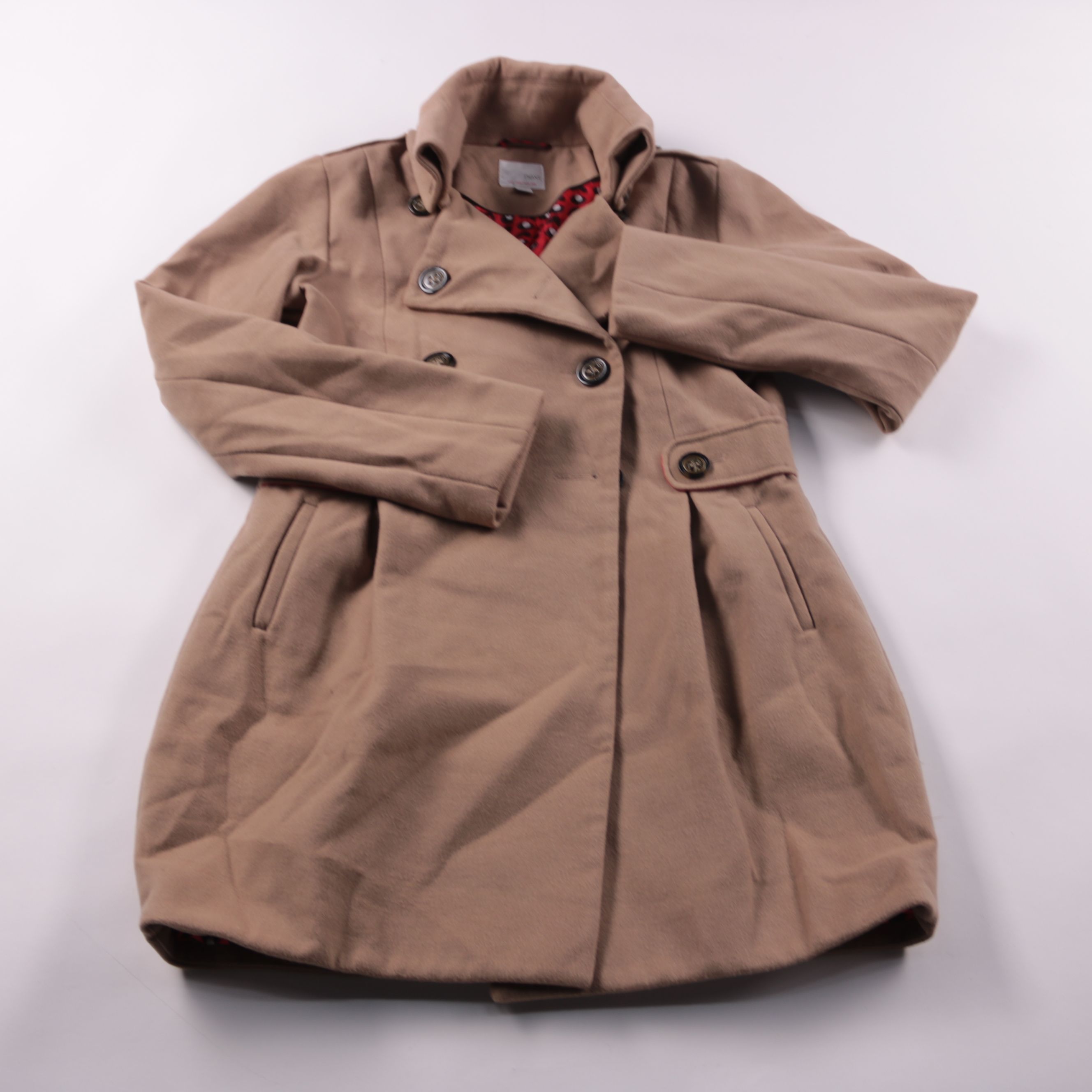 Двубортное пальто Next бежевого цвета с отложным воротником и удобными боковыми карманами. Подойдёт для школы и прогулок в прохладную погоду весной и осенью. Практично тем, что легко сочетается с повседневной одеждой и обувью.