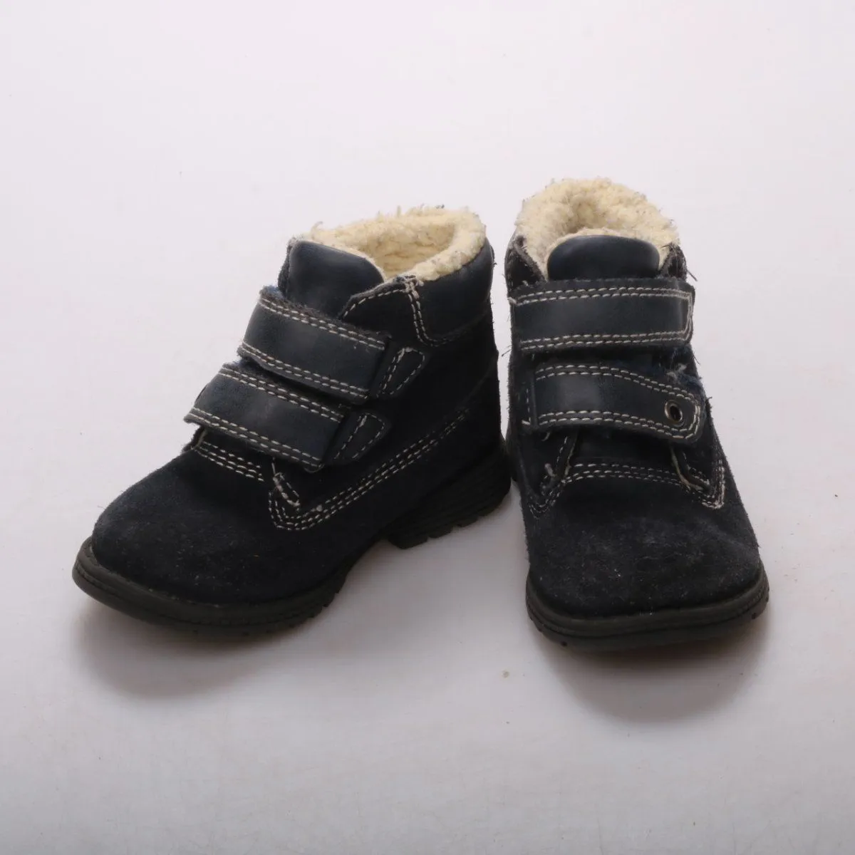 Зимние ботинки Leone тёмно-синего цвета с утеплённой меховой подкладкой и застёжками на липучках. Подойдут для повседневных прогулок в холодную погоду. Липучки помогают быстро обувать ребёнка и хорошо фиксируют ногу.