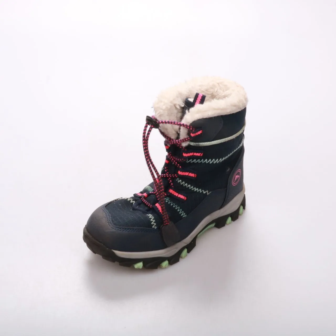 Зимние сноубутсы для девочки, бренд не указан, с тёплой меховой подкладкой и шнуровкой с фиксатором. Подойдут для прогулок в холодную погоду и активных игр на улице. Рельефная подошва помогает меньше скользить на снегу.