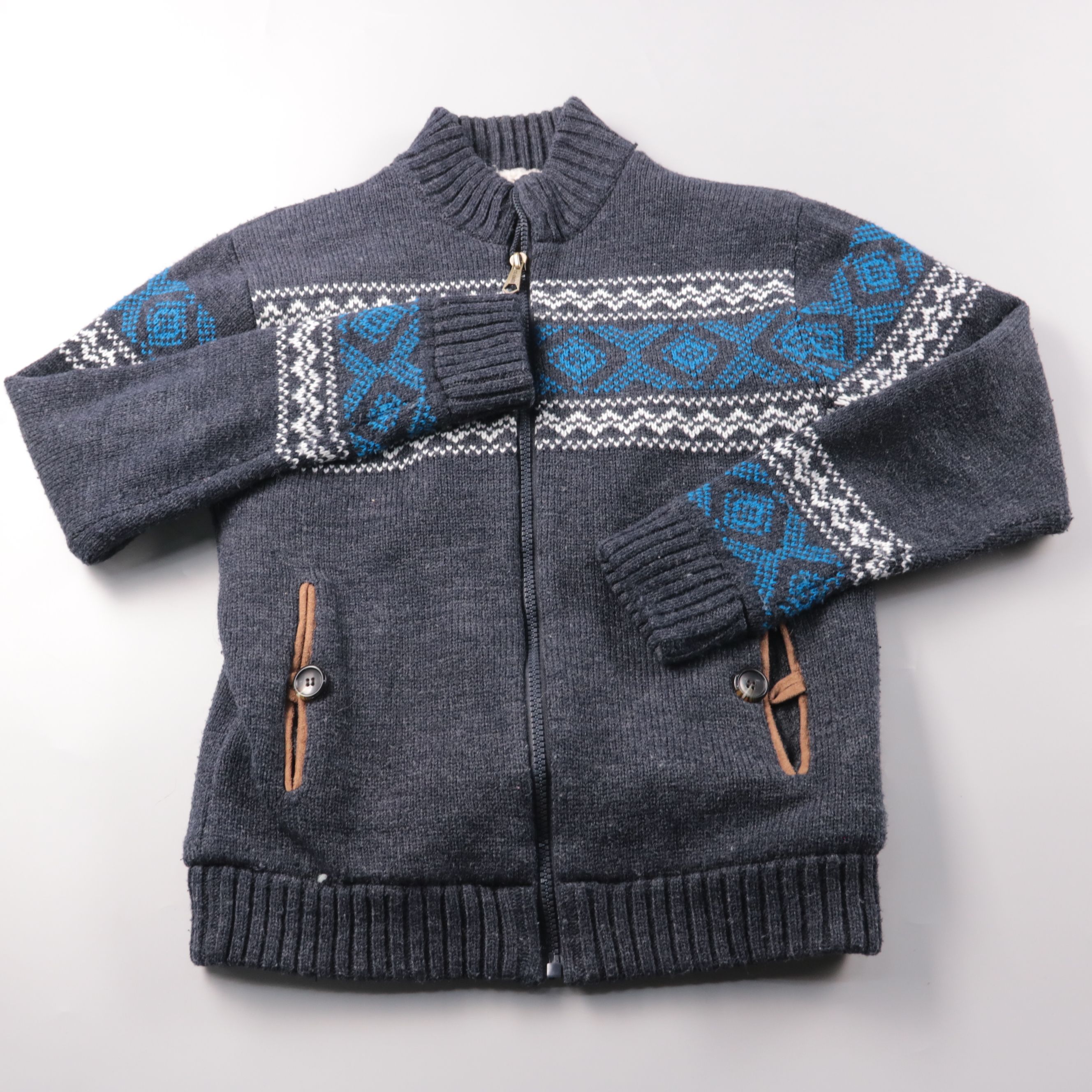 Вязаная кофта Earthbound на молнии с высоким воротником и узором по кокетке. Подойдёт для школы и прогулок в прохладную погоду, удобно носить как верхний слой. Мягкая подкладка и карманы делают модель практичной на каждый день.
