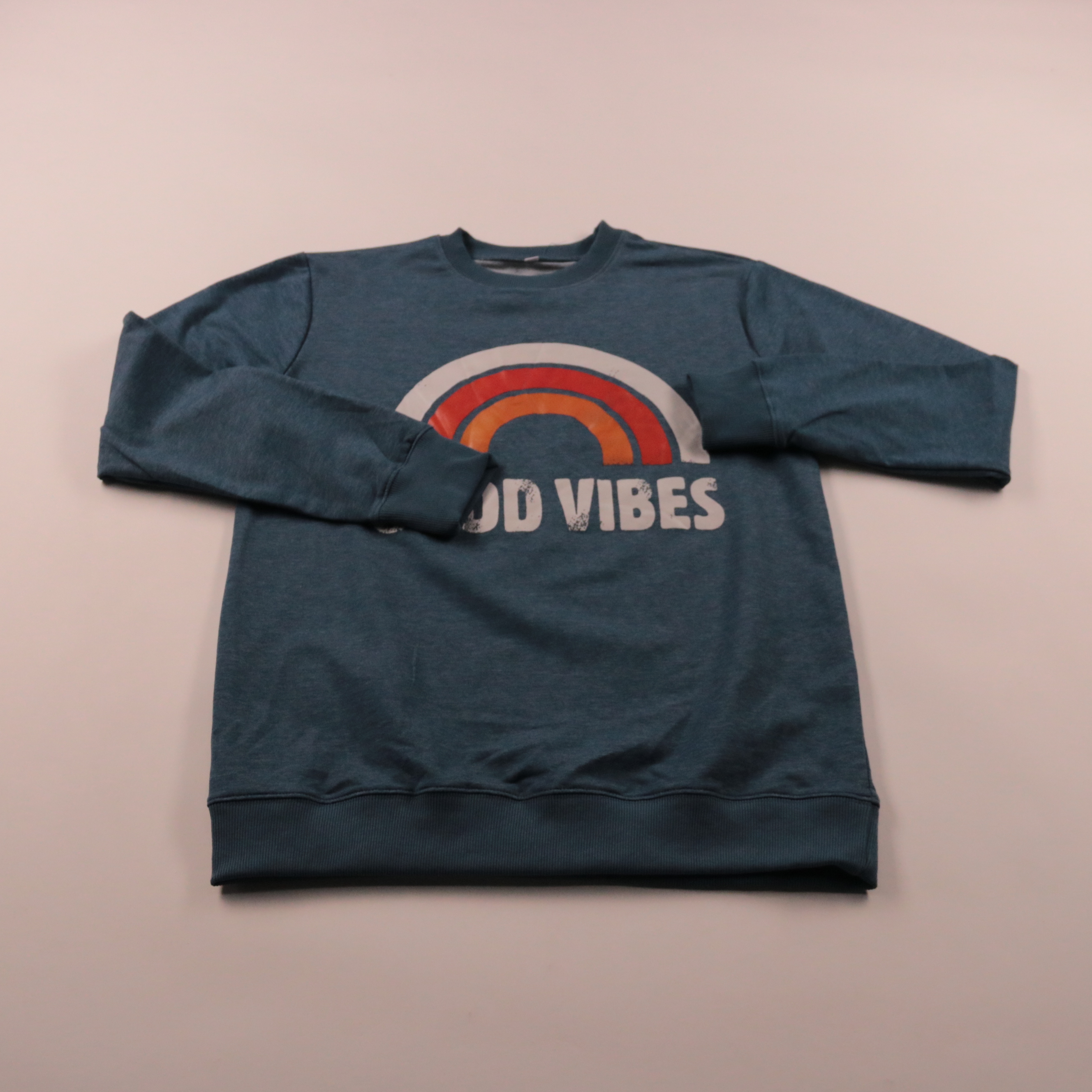 Толстовка для мальчика с принтом «GOOD VIBES» и радугой, мягкий трикотаж с начёсом. Подойдёт для школы, прогулок и дома в прохладную погоду. Практична в носке: удобные манжеты и низ на резинке хорошо держат форму.