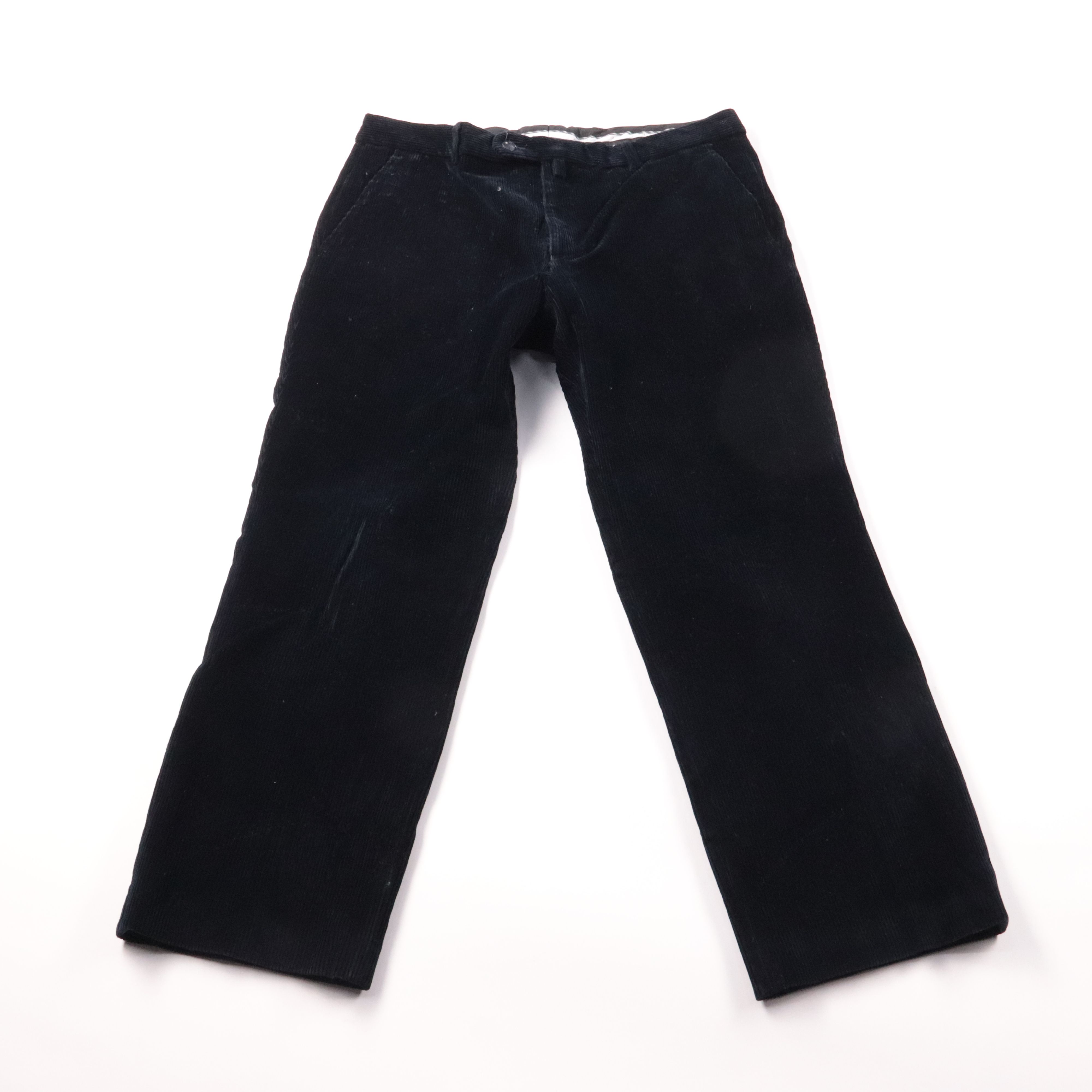Мужские брюки Harold из чёрной вельветовой ткани, прямого кроя. Подойдут для повседневной носки и офисных образов в прохладную погоду. Практичны в уходе и хорошо держат форму за счёт добавления эластана.