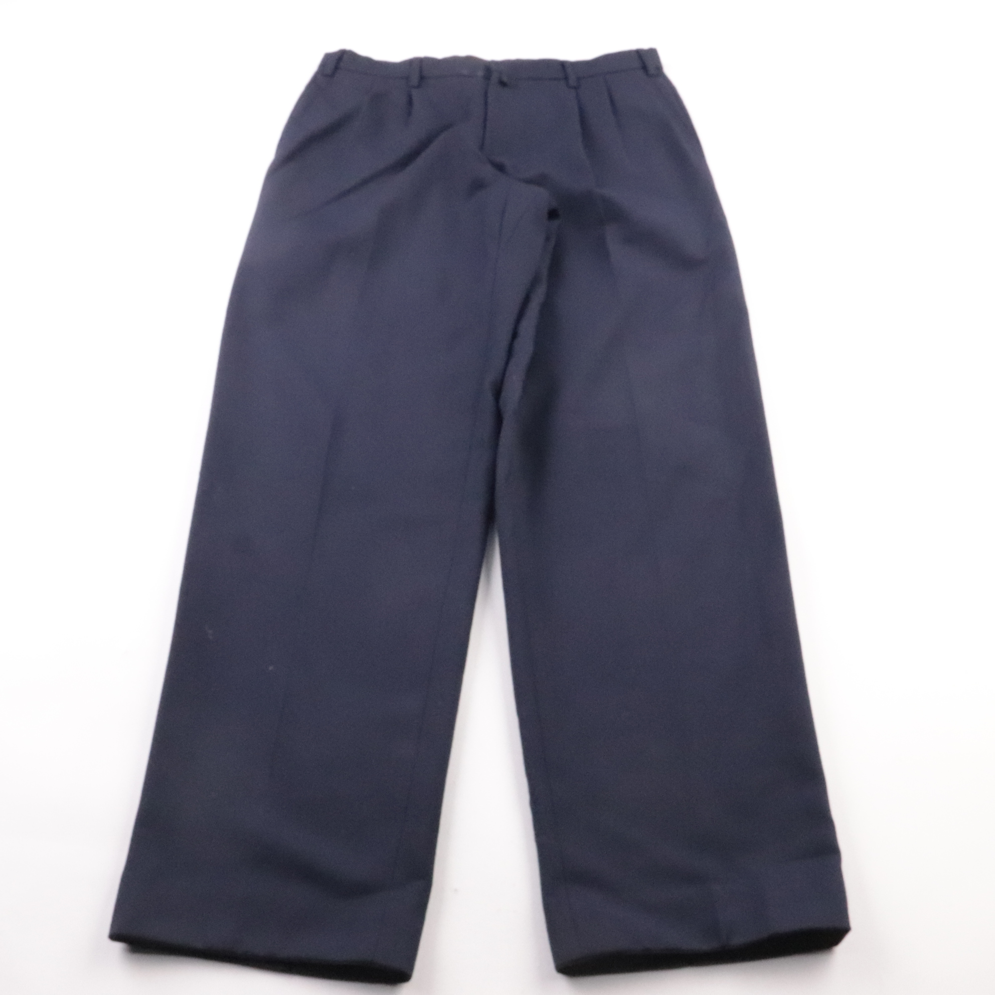Мужские классические брюки тёмно-синего цвета со стрелками и шлёвками под ремень. Подойдут для офиса и деловых встреч, легко сочетаются с рубашкой или джемпером. Практичный смесовый материал с шерстью держит форму и меньше мнётся.