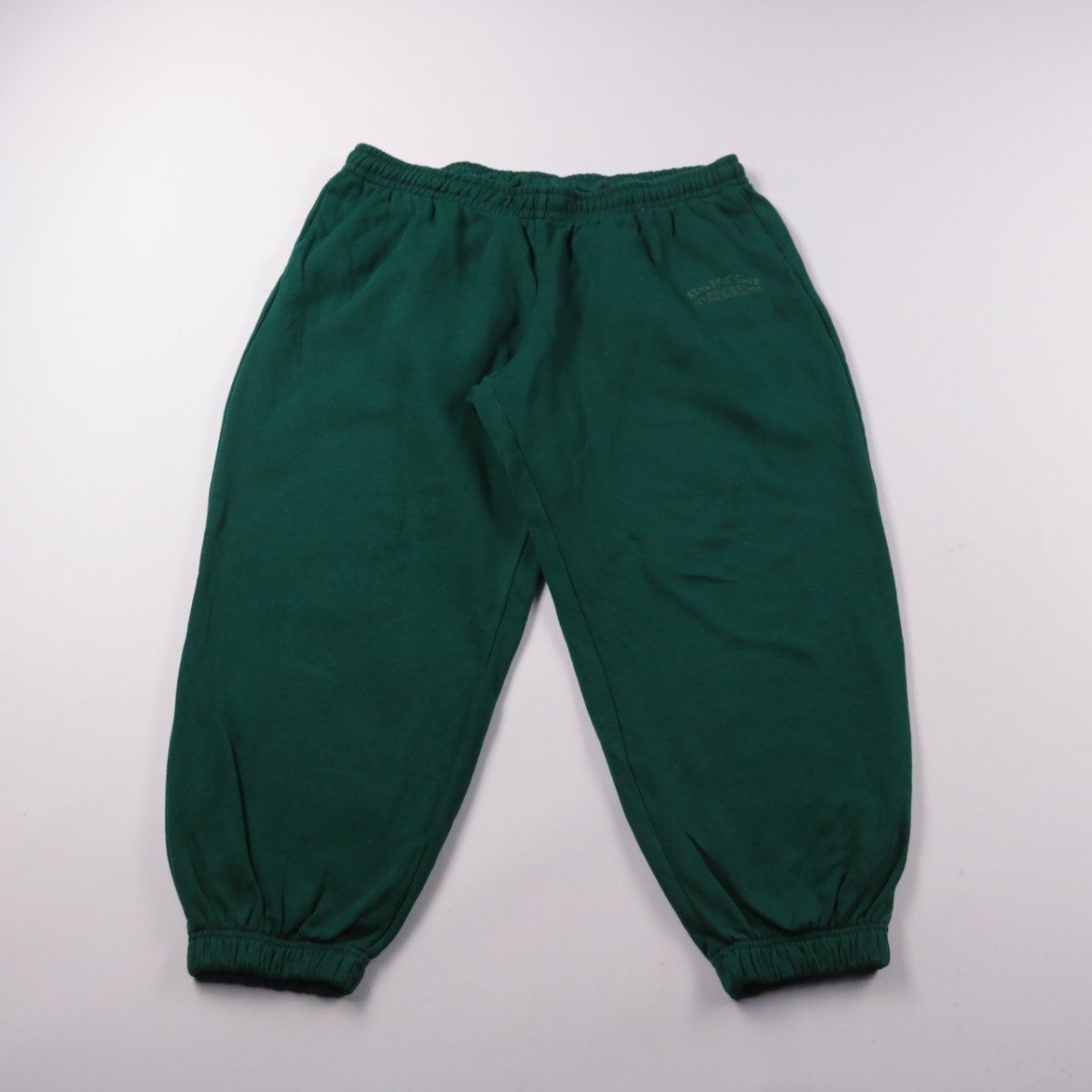 Спортивные брюки H&M Basic тёмно-зелёного цвета на резинке, с манжетами по низу. Подойдут для повседневной носки, дома или для лёгких тренировок в прохладную погоду. Практичный плюс — мягкий футер и удобная посадка, не сковывает движения.