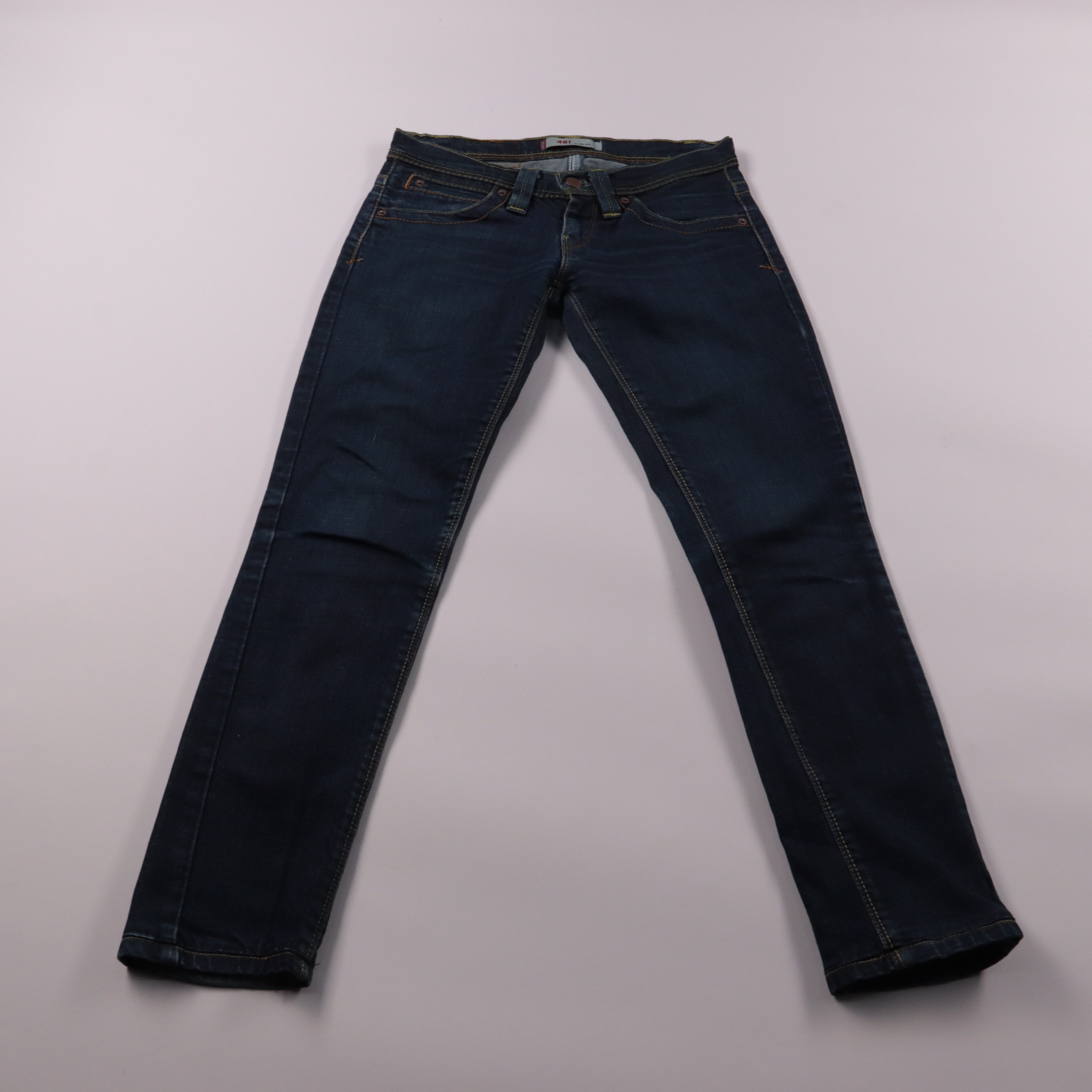 Мужские джинсы Levi's 481 Slim Fit из тёмно-синего денима с умеренной посадкой и зауженным кроем. Подойдут на каждый день и для повседневных образов с кедами или ботинками. Практичный плюс — плотная ткань хорошо держит форму и не требует сложного ухода.