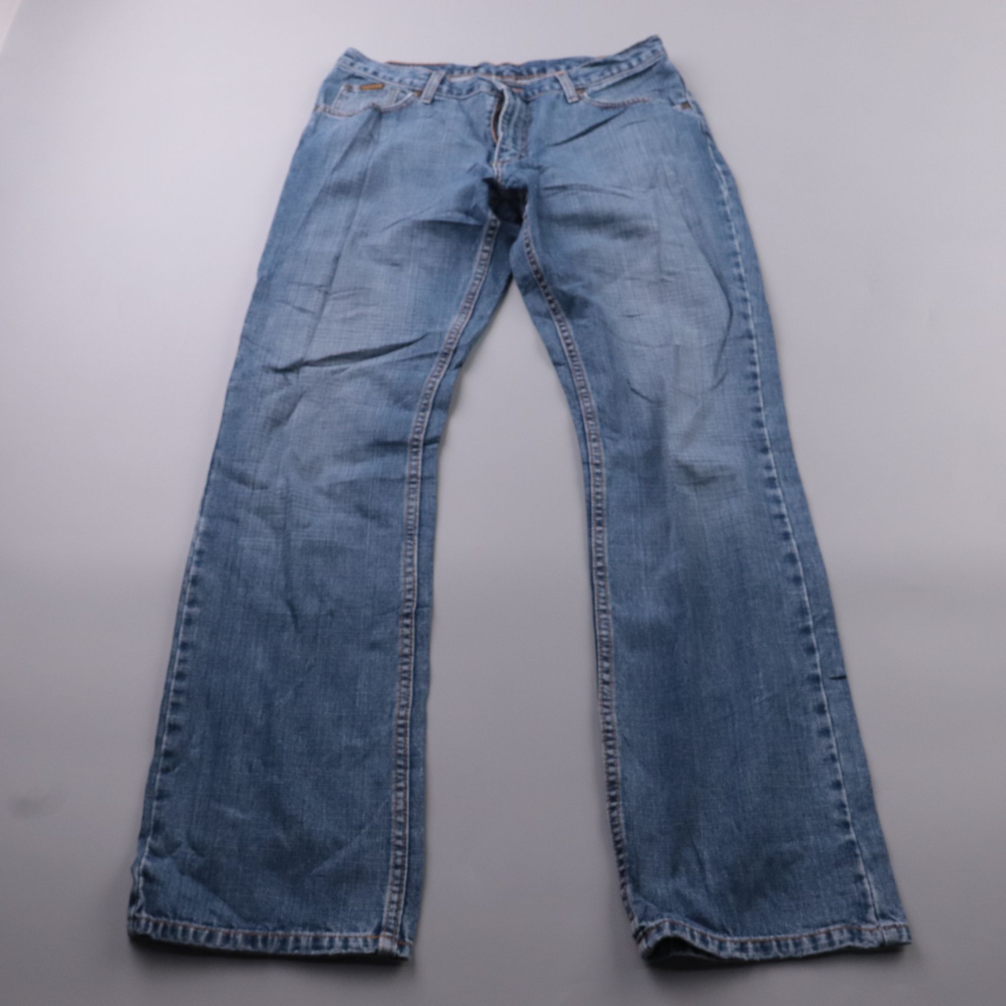 Мужские джинсы Maverick из хлопкового денима в классическом синем цвете. Подойдут на каждый день и для повседневных образов, комфортная посадка и прочная ткань хорошо держат форму.