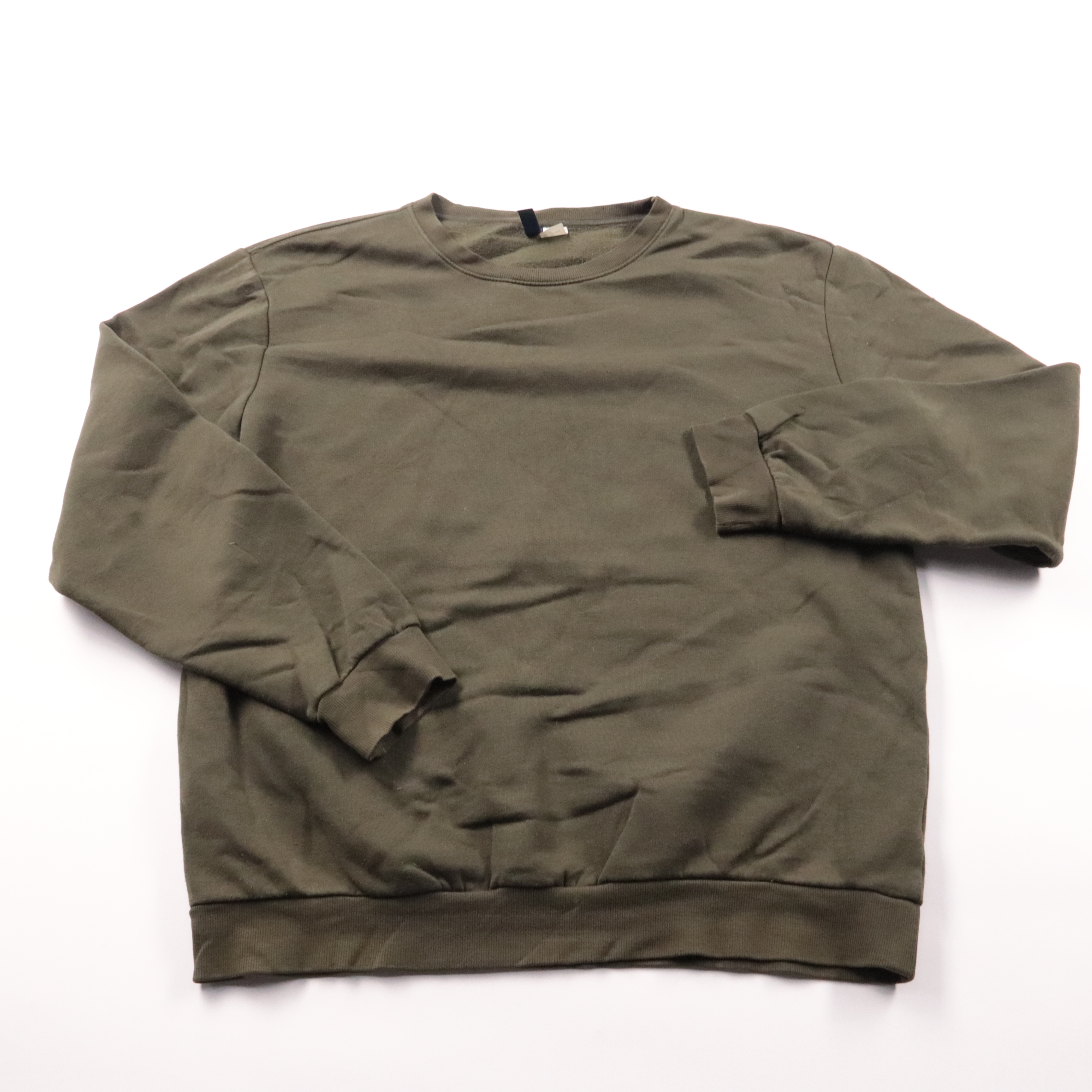 Мужской свитшот H&M базового кроя в оливковом цвете, с круглым вырезом и манжетами. Подойдёт для повседневной носки и прогулок в прохладную погоду, удобно сочетать с джинсами и спортивными брюками. Материал с хлопком хорошо дышит и неприхотлив в уходе.