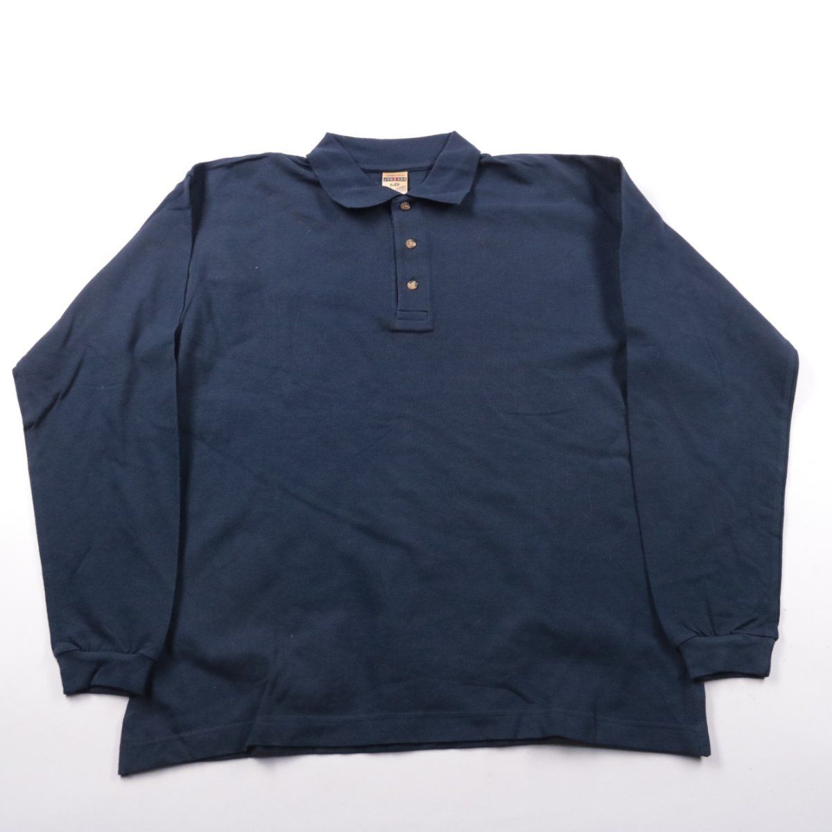 Мужское поло Jerzees с длинным рукавом в тёмно-синем цвете, классический воротник и планка на пуговицах. Подойдёт для повседневной носки и спокойного офисного дресс-кода, хорошо сочетается с джинсами и чиносами. Натуральный хлопок приятен к телу и позволяет коже дышать.