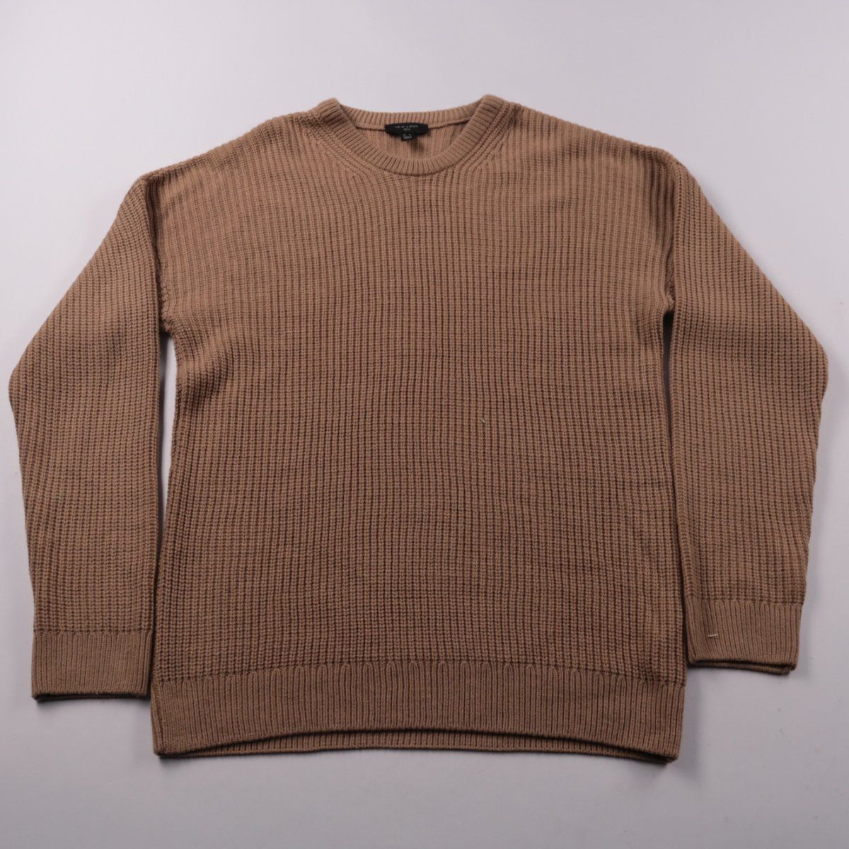 Мужской джемпер New Look Men крупной вязки, базовый бежево-коричневый цвет. Подойдёт для повседневной носки в прохладную погоду и в офис с джинсами/брюками. Акриловый состав прост в уходе и быстро сохнет.