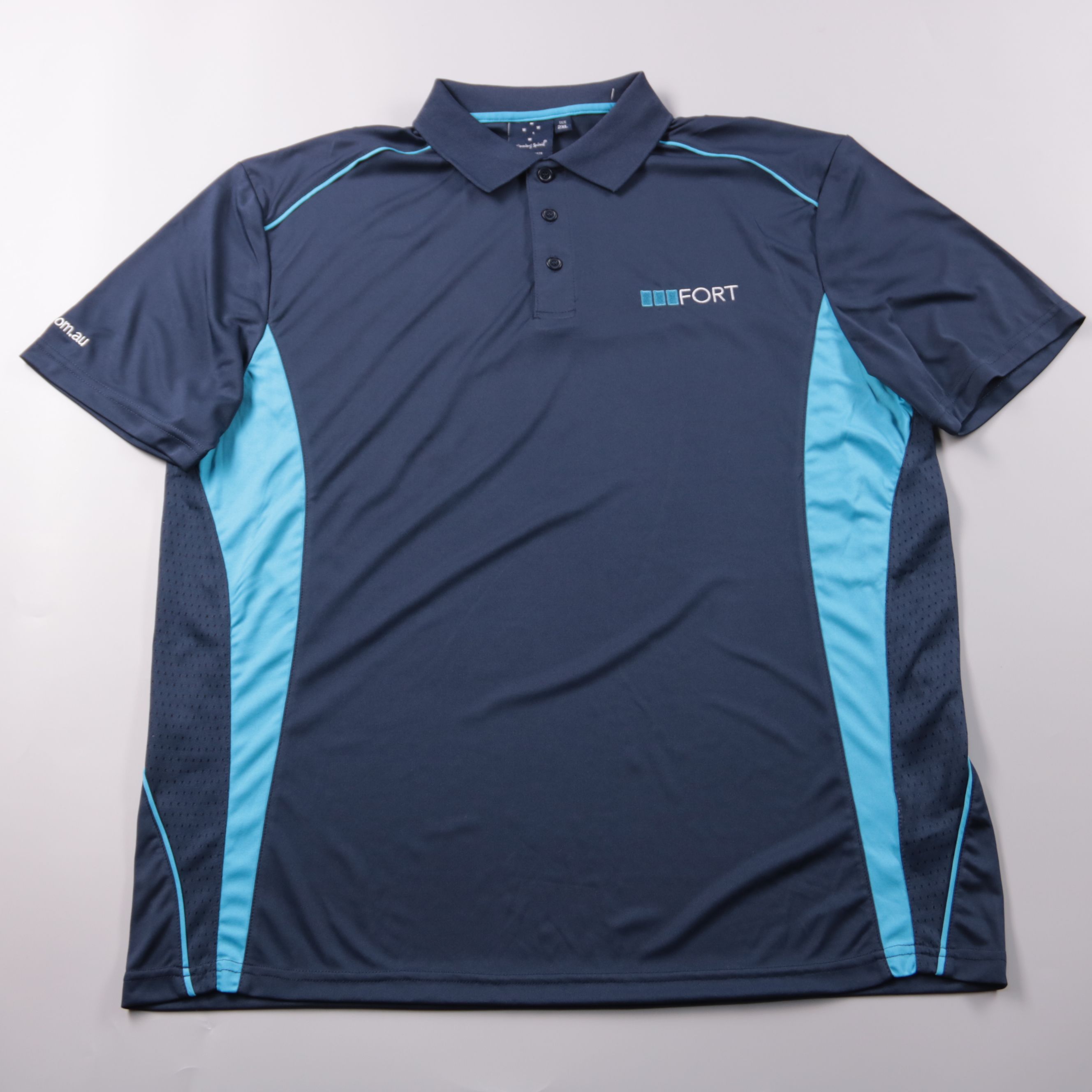 Мужское поло Winning Spirit тёмно-синего цвета с голубыми вставками и логотипом на груди, короткий рукав и воротник на пуговицах. Подойдёт для спорта, работы и повседневной носки в тёплую погоду. Ткань Cooldry быстро сохнет и комфортна при активном дви...