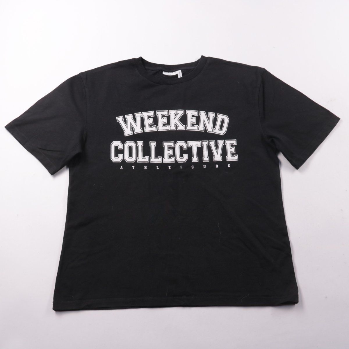 Футболка ASOS DESIGN чёрного цвета с крупным принтом на груди «WEEKEND COLLECTIVE». Подойдёт для повседневных образов и отдыха, хорошо сочетается с джинсами и шортами. Практичный плюс — мягкий трикотаж и простой уход.