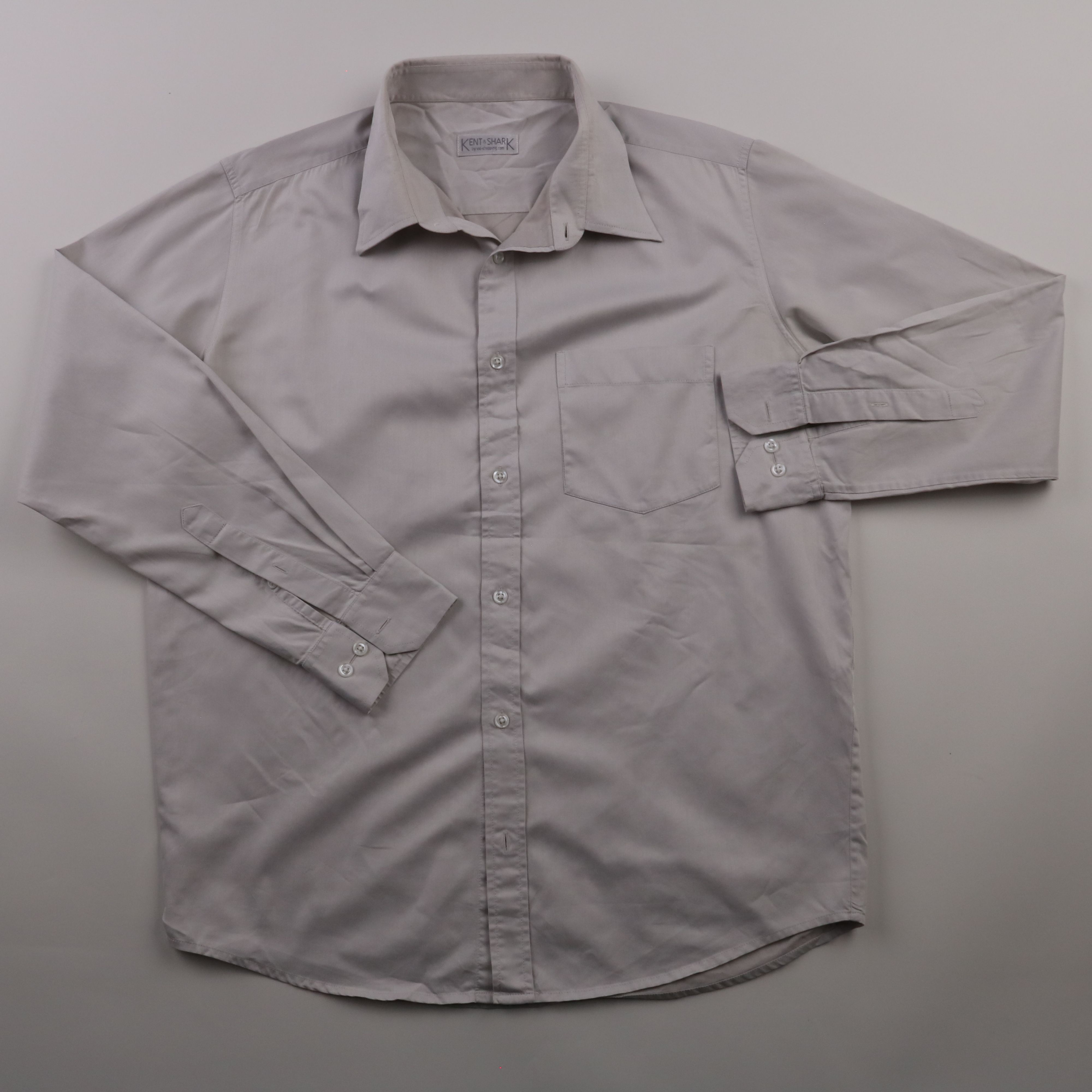 Мужская рубашка Kent&Shark светло-серого цвета с длинным рукавом и нагрудным карманом. Подойдёт для офиса и повседневных образов, легко сочетается с брюками или джинсами. Хлопковая ткань дышит и комфортна в носке.