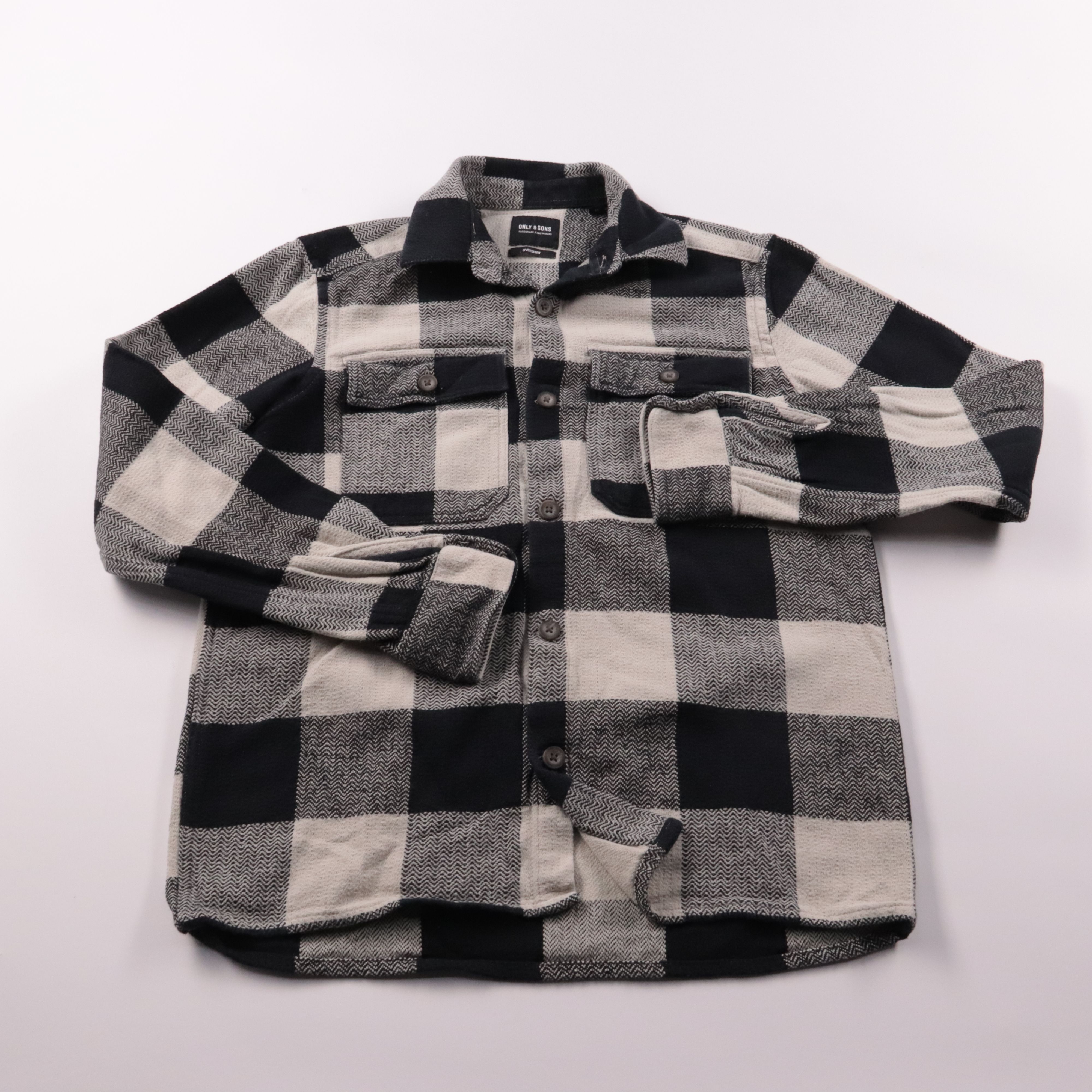 Мужская рубашка-оверсшот Only & Sons в крупную чёрно-белую клетку, на пуговицах и с нагрудными карманами. Подойдёт для прохладной погоды и многослойных образов поверх футболки или тонкого свитера. Плотная ткань держит форму и хорошо выручает как лёгкая...