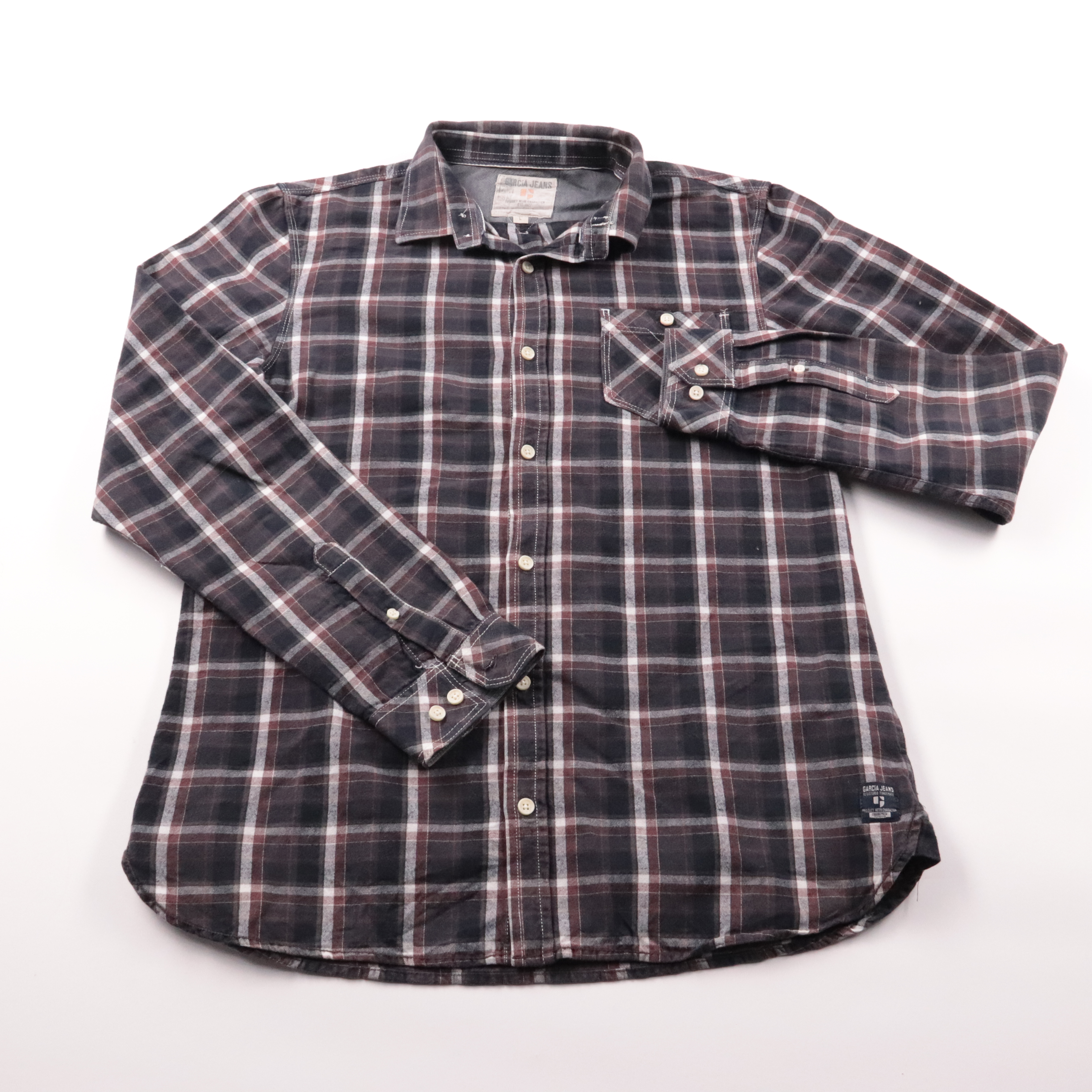 Мужская рубашка C&A Jeans в клетку с длинным рукавом и нагрудным карманом на пуговице. Подойдёт для повседневных образов на работу и выходные, хорошо смотрится как самостоятельно, так и поверх футболки. Хлопковая ткань приятна к телу и легко стирается.