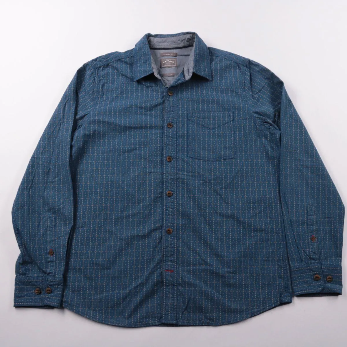 Мужская рубашка FatFace Classic Fit из хлопка в синем цвете с мелким узором и нагрудным карманом. Подойдёт для повседневной носки и офиса в стиле casual, хорошо смотрится как самостоятельно, так и поверх футболки. Натуральный хлопок дышит и комфортен в течение дня.
