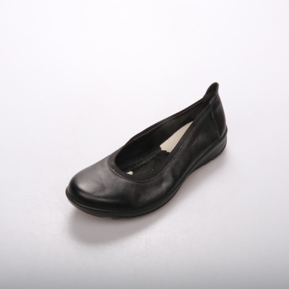 Женские балетки из гладкого материала в чёрном цвете на мягкой подошве. Подойдут для повседневной носки и офиса, хорошо сочетаются с брюками и юбками. Практичное преимущество — лёгкие и устойчивые, с рельефной подошвой для лучшего сцепления.