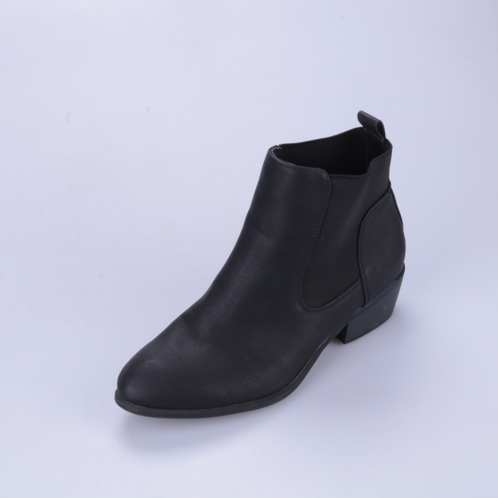 Чёрные ботильоны без бренда в стиле челси: гладкий верх и эластичные вставки по бокам. Подойдут на каждый день в демисезон с джинсами, юбкой или платьем. Устойчивый невысокий каблук делает их удобными для долгой ходьбы.