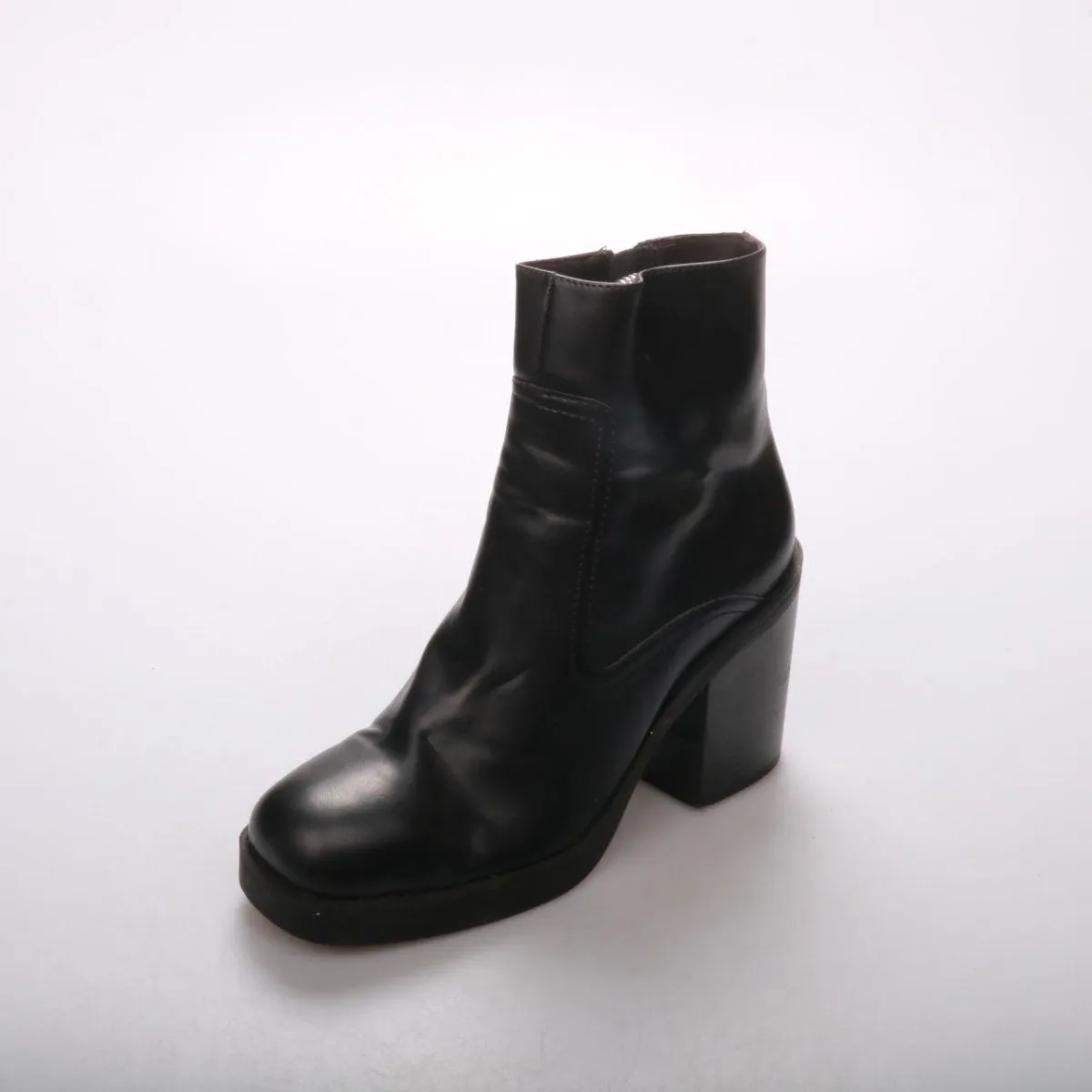 Женские ботильоны Plato из гладкого материала на устойчивом каблуке и платформе, с боковой молнией. Подойдут для повседневных образов в прохладную погоду и легко сочетаются с джинсами, платьями и юбками. Толстая подошва даёт более уверенную опору и защищает от сырости.
