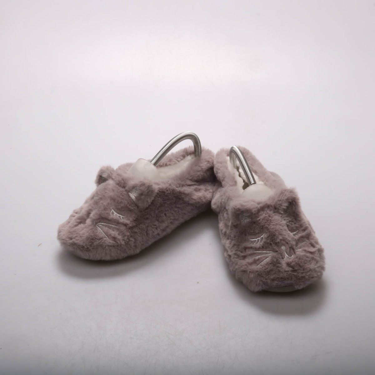 Домашние тапочки без бренда из мягкого искусственного меха, с вышивкой мордочки кота и ушками. Подойдут для дома и дачи, хорошо сохраняют тепло. Подошва с противоскользящими точками помогает увереннее ходить по гладкому полу.
