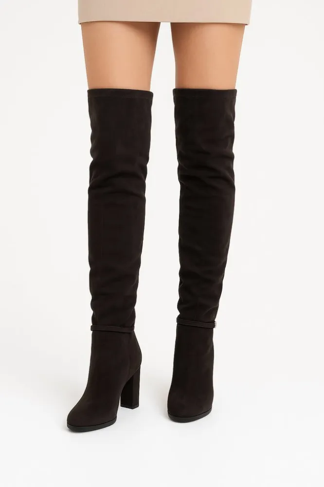 Женские сапоги-чулки тёмно-коричневого (почти чёрного) цвета, с высоким голенищем и устойчивым каблуком, застёгиваются на молнию сбоку. Подойдут для повседневных образов с платьем, юбкой или узкими джинсами в прохладную погоду. Каблук устойчивый, а пос...