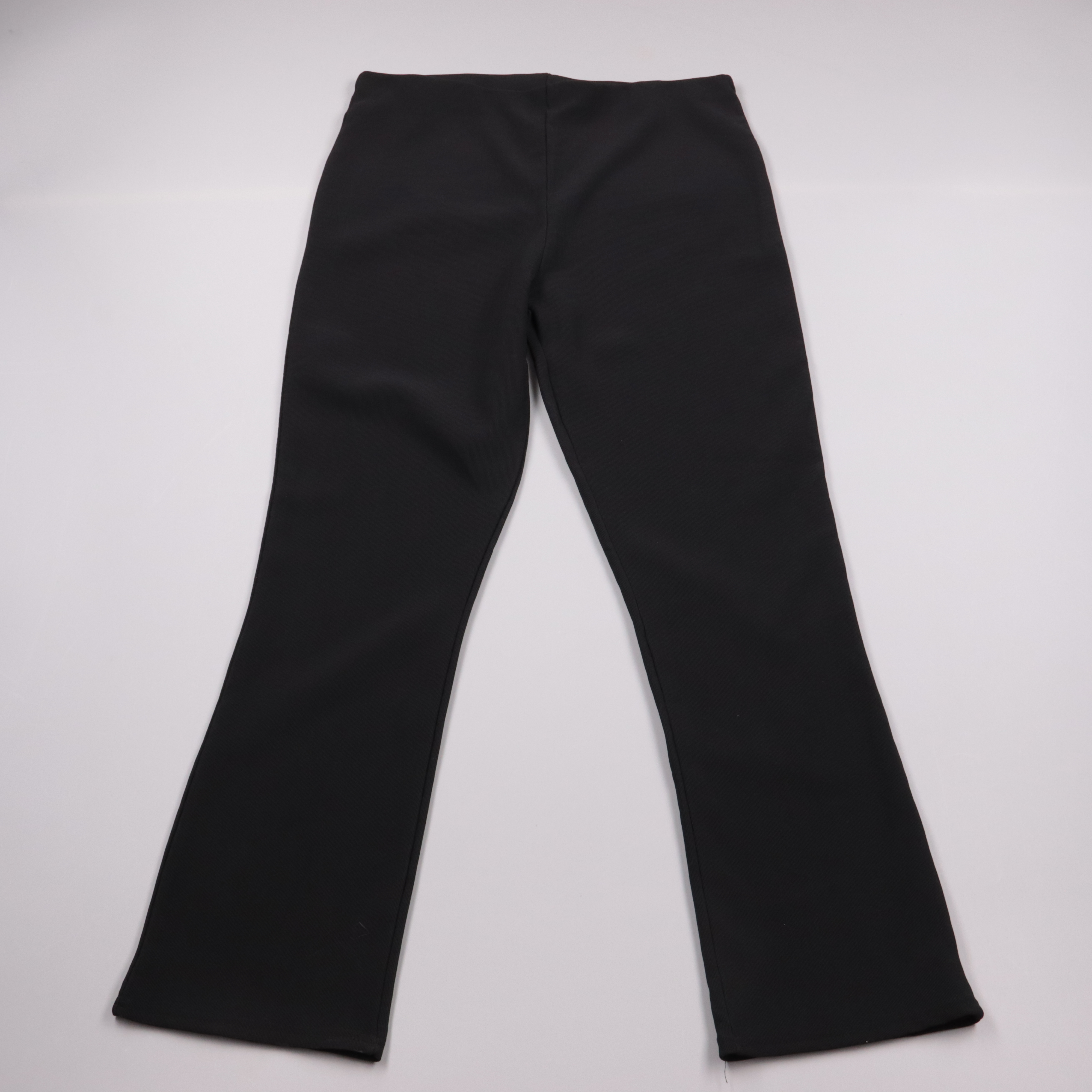 Женские чёрные брюки-клёш из плотного материала с аккуратной посадкой по талии. Подойдут для офиса и повседневных образов, легко сочетаются с рубашками, топами и жакетами. Ткань с добавлением эластана немного тянется и комфортна в носке.