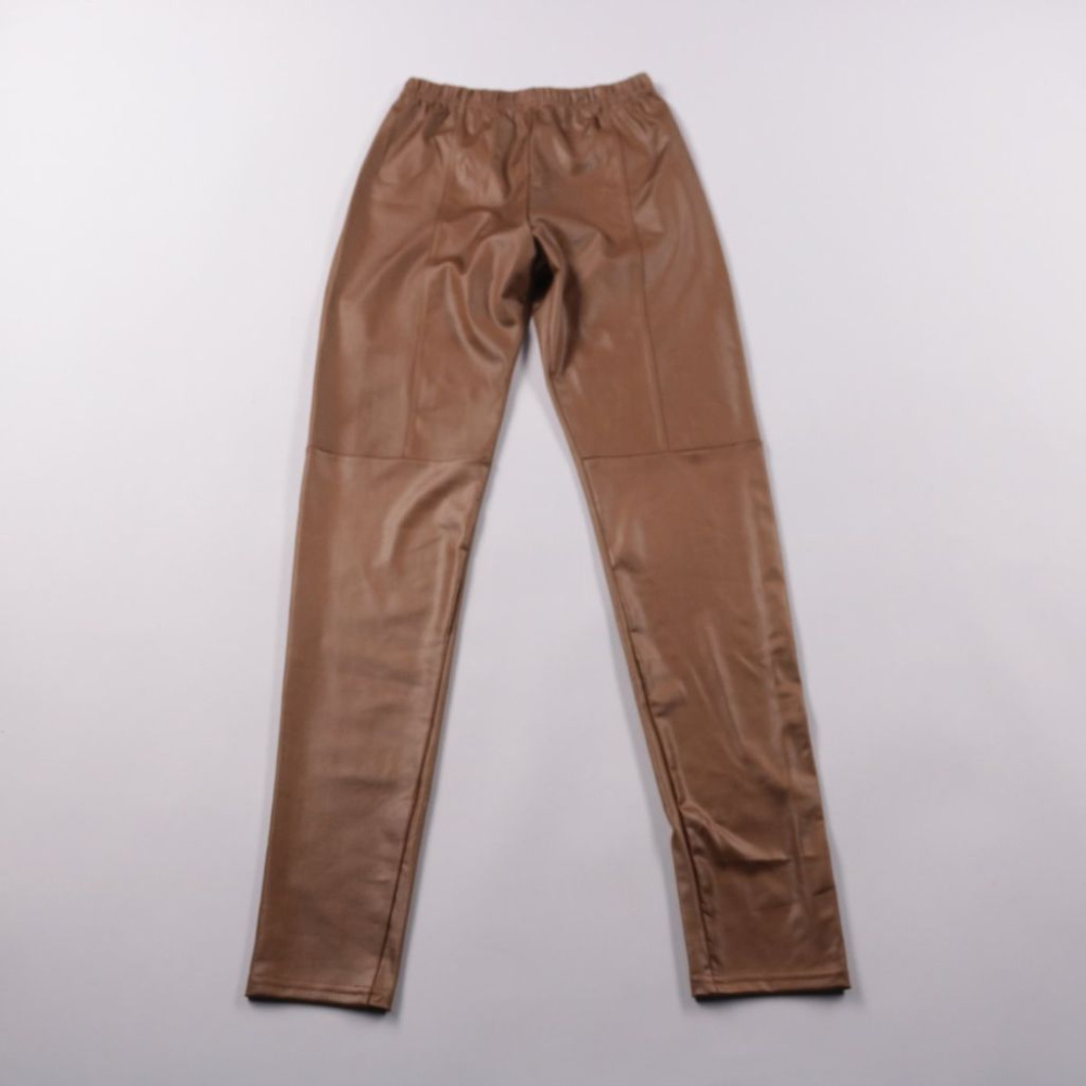 Женские зауженные брюки-легинсы из экокожи коричневого цвета, пояс на резинке. Подойдут для повседневных образов в городе и на выход, хорошо сочетаются со свитерами и жакетами. Практичное преимущество — материал легко протирается и не требует сложного ...