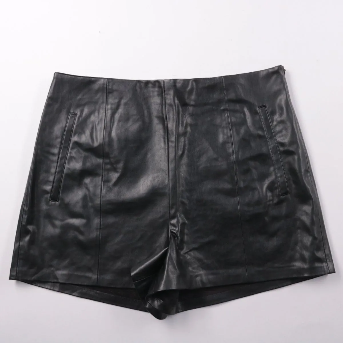 Женские шорты Primark из эко-кожи в чёрном цвете, лаконичный прямой силуэт с карманами. Подойдут для повседневных городских образов и вечерних выходов с рубашкой или свитером. Материал легко протирается и не требует сложного ухода.