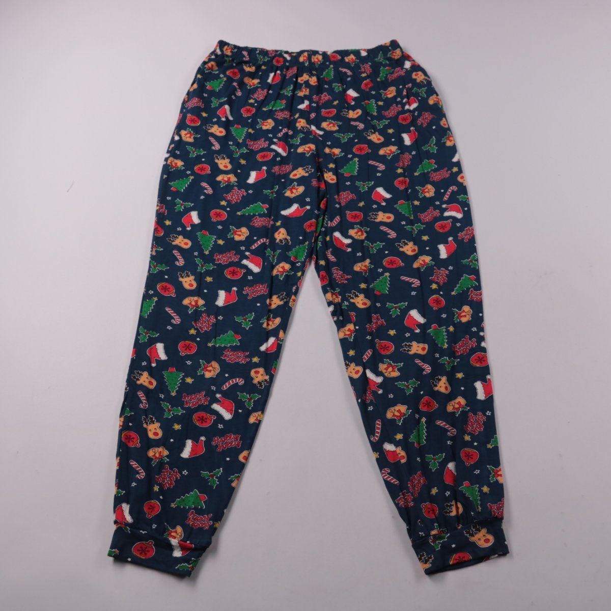 Женские брюки In The Style с эластичным поясом и манжетами внизу, в новогоднем принте на тёмно-синем фоне. Подойдут для дома и отдыха, ткань мягкая и тянется за счёт эластана. Практичны тем, что не сковывают движения и комфортно сидят на талии.
