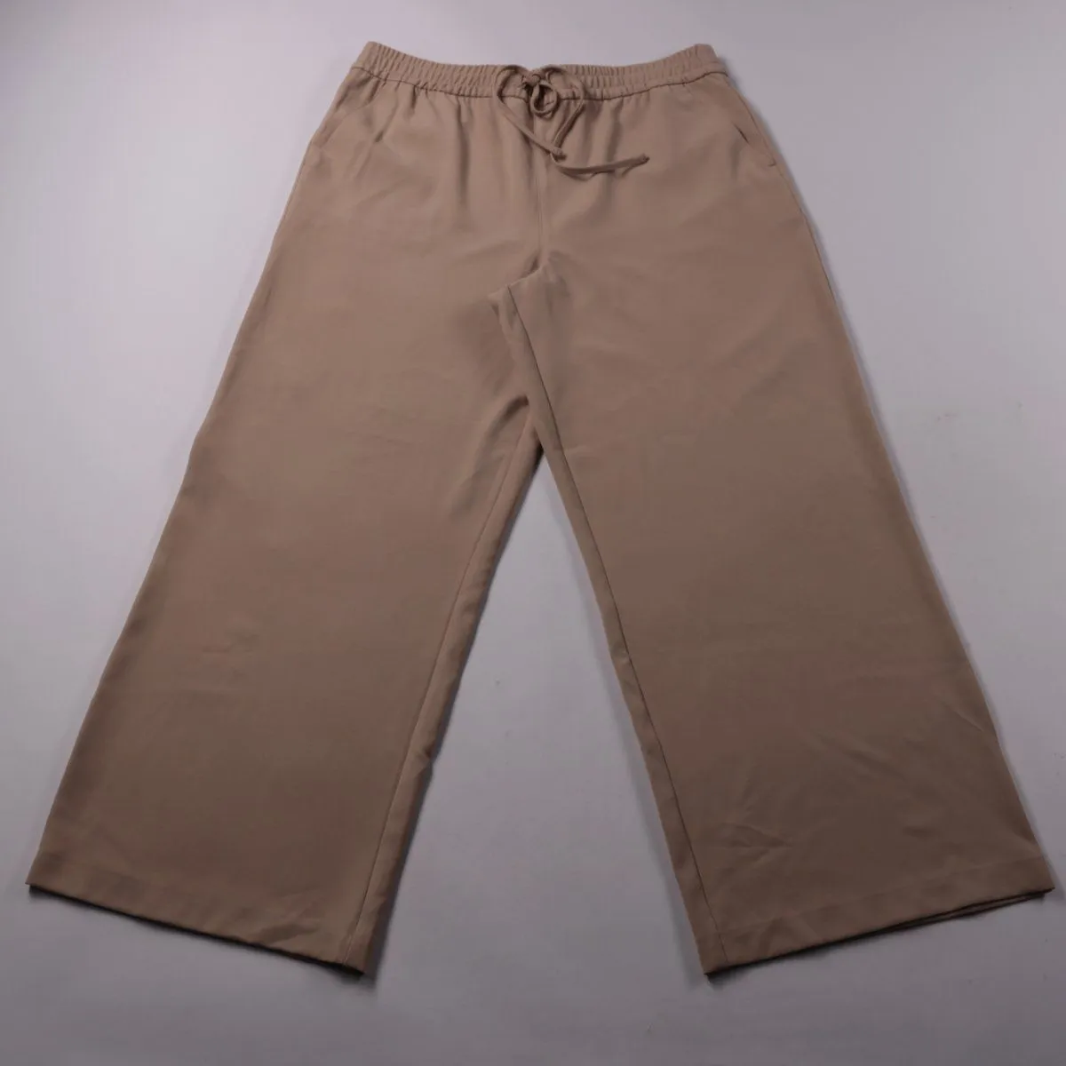 Женские брюки F&F бежевого цвета, прямого кроя, с эластичным поясом и шнурком. Подойдут для повседневной носки и спокойных образов на работу или прогулку. Пояс на резинке удобно регулируется по талии.