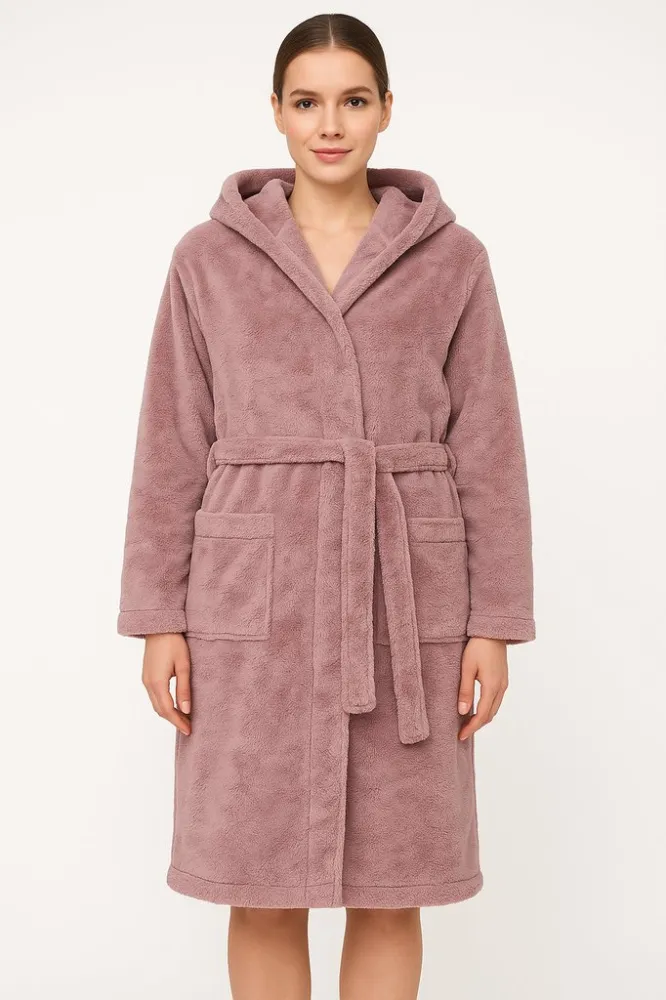 Женский домашний халат John Lewis из мягкого флиса, с капюшоном, поясом и накладными карманами. Подойдёт для дома после душа или в прохладные вечера. Полиэстер быстро сохнет и прост в уходе.