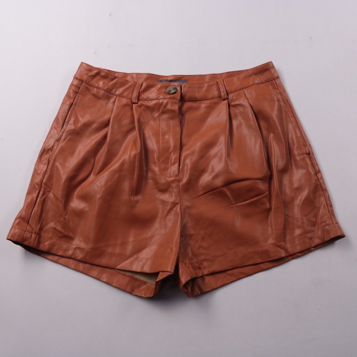 Женские шорты Primark из материала под кожу коричневого цвета, с защипами и шлёвками под ремень. Подойдут для летних повседневных образов и поездок в город. Практичны тем, что поверхность легко протирается и не требует сложного ухода.