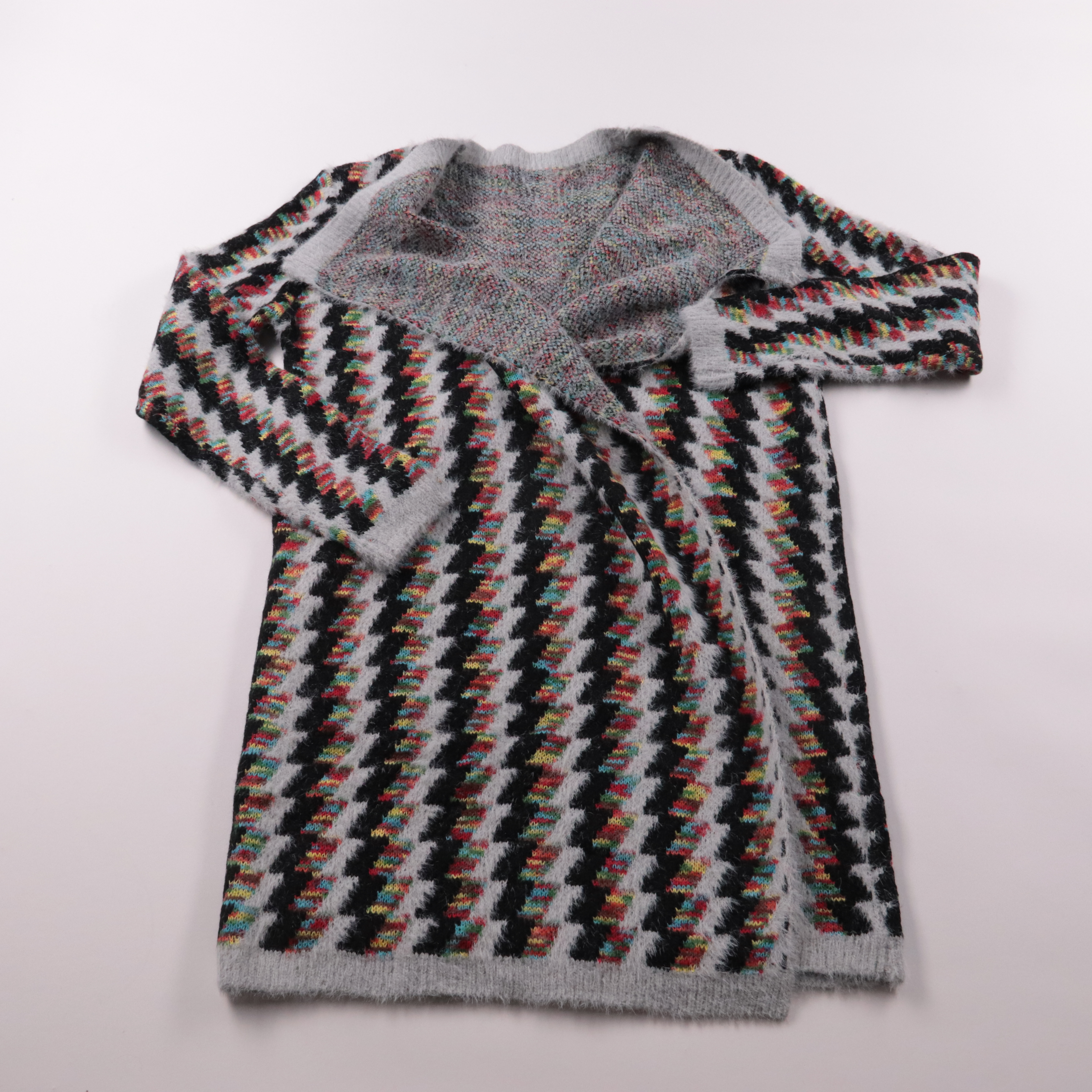 Вязаный кардиган с объёмной фактурой и ярким многоцветным узором, без застёжки. Подойдёт для прохладных дней и многослойных образов с джинсами или платьем. Мягкий материал (акрил/полиамид) быстро сохнет и прост в уходе.