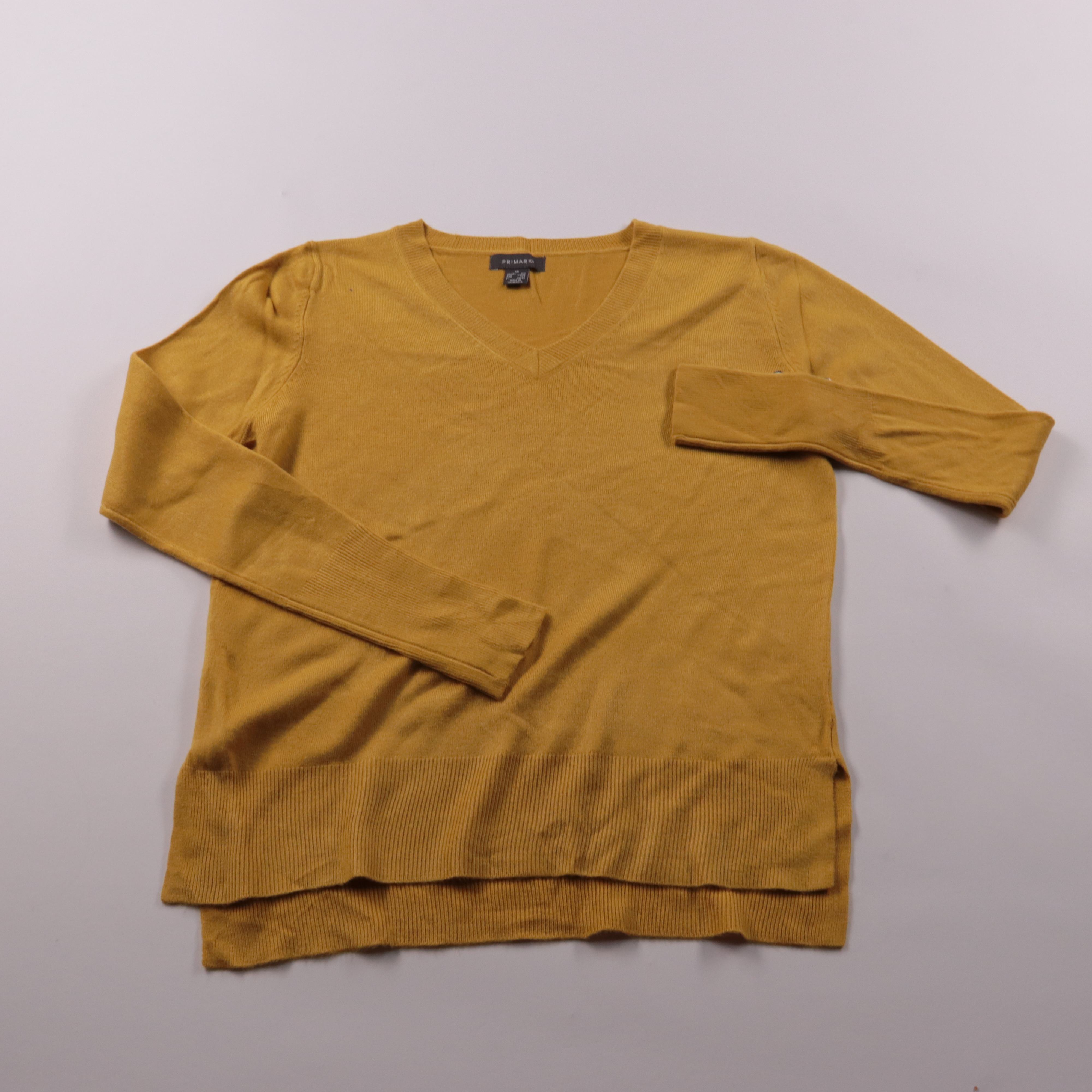 Женский джемпер Primark горчичного цвета с V-образным вырезом и длинными рукавами. Подойдёт для повседневных образов на работу или учёбу в прохладную погоду, удобно носить с джинсами и юбками. Лёгкий трикотаж хорошо садится по фигуре и комфортно носитс...
