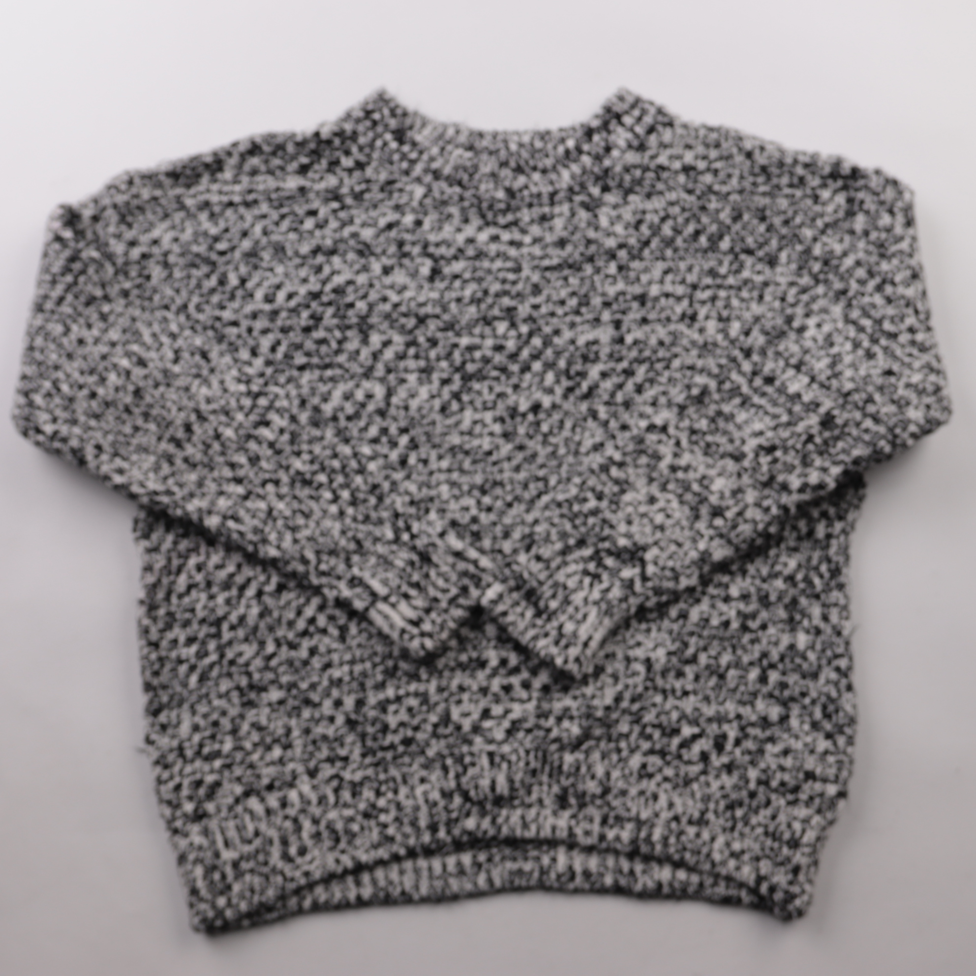 Вязаный свитер H&M крупной фактурной вязки в черно-белом меланже с круглым вырезом и манжетами. Подойдет для повседневных образов в прохладную погоду, хорошо сочетается с джинсами и юбками. Плотный трикотаж сохраняет тепло и комфортно носится в течение...