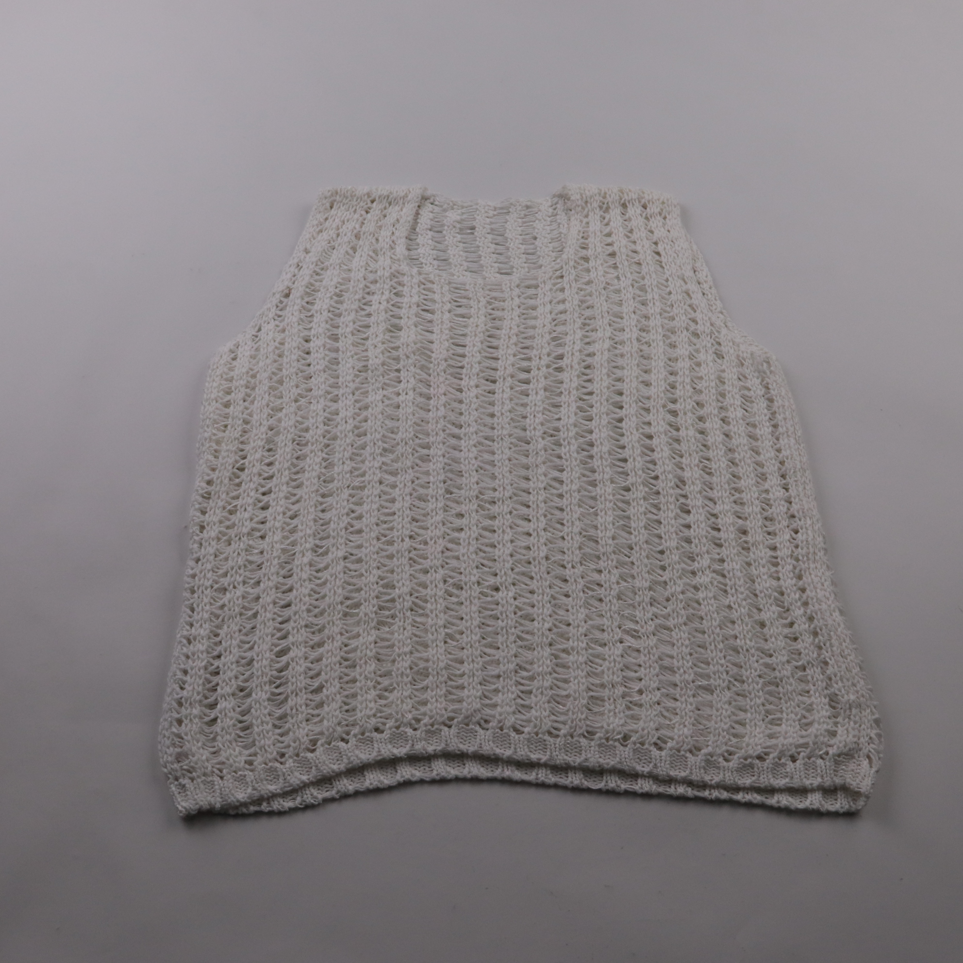 Ажурная вязаная кофта без рукавов в молочно-белом цвете, хорошо смотрится в многослойных образах поверх топа или рубашки. Подойдёт для тёплой погоды и отпуска благодаря лёгкой, «дышащей» вязке. Практичное преимущество — быстро сохнет и занимает мало ме...