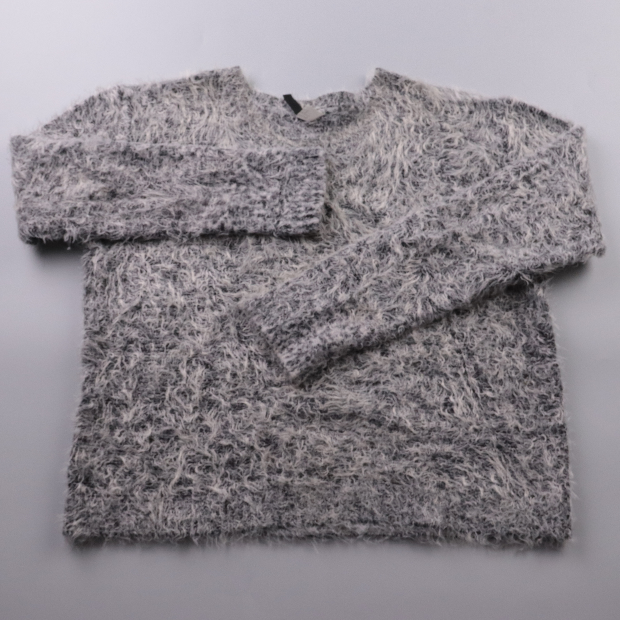 Пушистый свитер H&M серого меланжевого цвета с круглым вырезом. Подойдёт для повседневных образов в прохладную погоду, хорошо смотрится с джинсами и юбками. Лёгкий по составу и неприхотливый в уходе, быстро сохнет при сушке на плоскости.