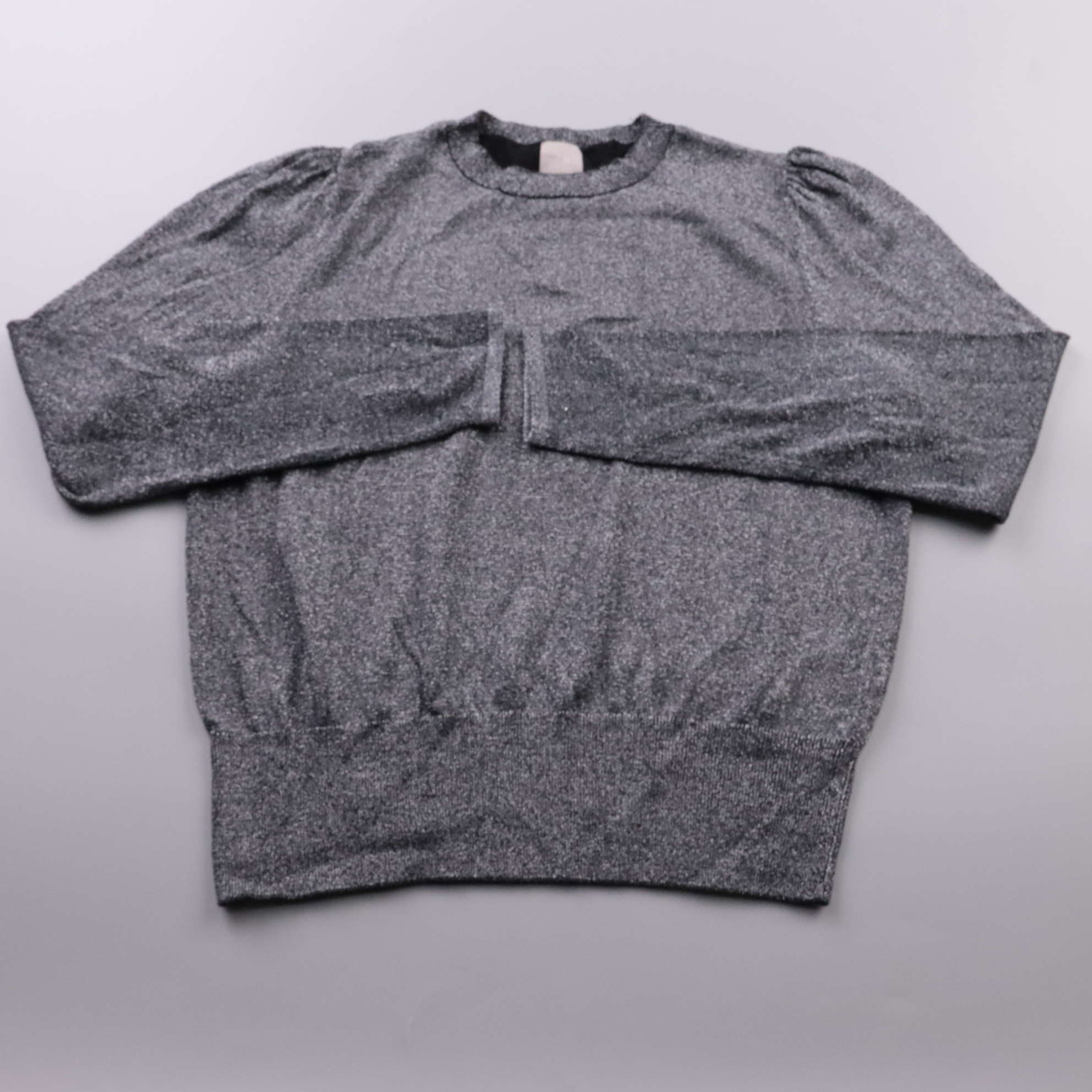 Женский джемпер H&M серого цвета с лёгким металлизированным блеском и объёмными плечами. Подойдёт для повседневных образов и на выход в прохладную погоду, легко сочетается с джинсами и юбками. Трикотаж мягкий и тянется, удобно сидит и не стесняет движе...