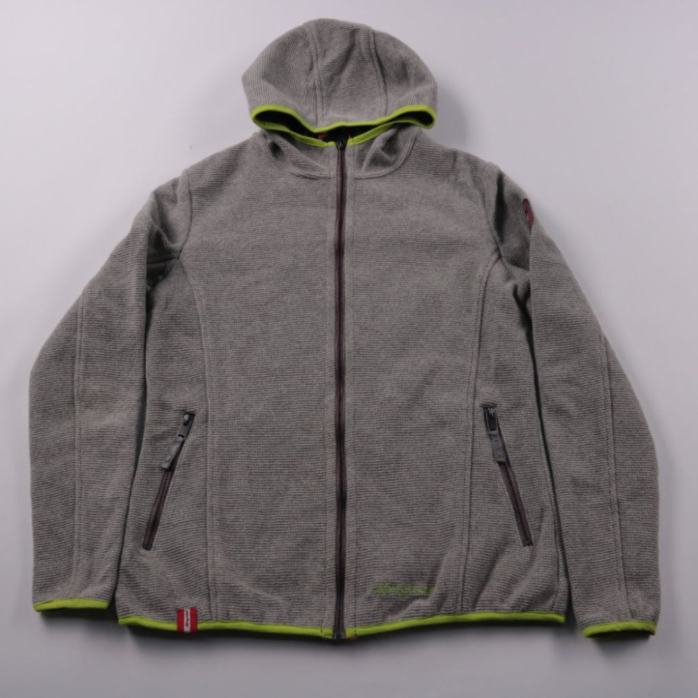 Кофта Almgewand на молнии с капюшоном, выполнена из мягкого трикотажа серого цвета с салатовой окантовкой. Подойдёт для прогулок и поездок в прохладную погоду, удобно носить как второй слой. Практичный плюс — карманы на молнии и подкладка, которая доба...