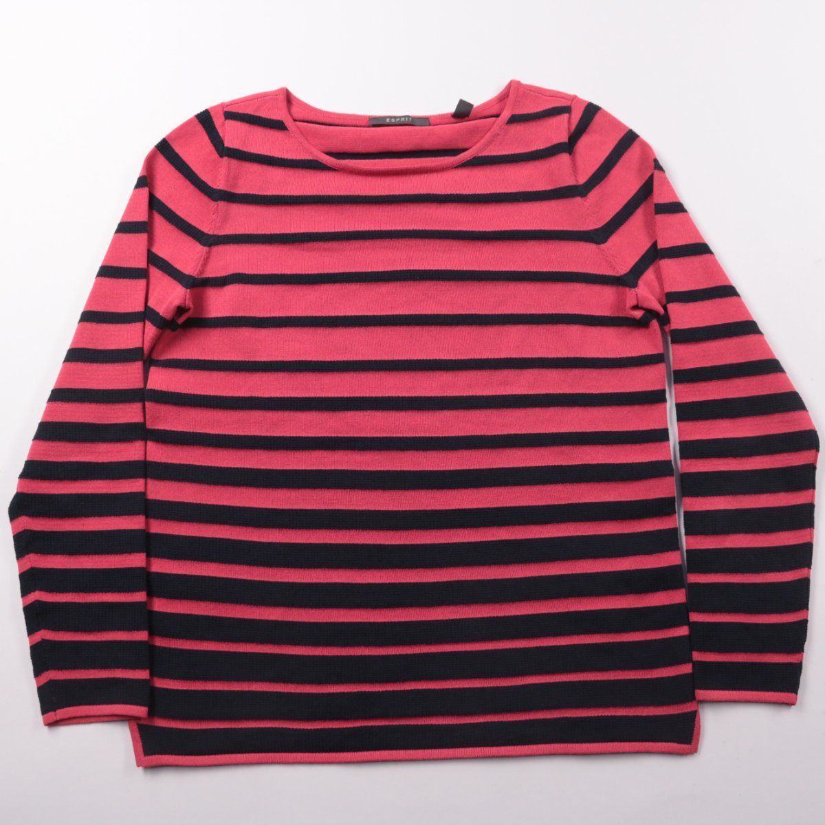 Женский джемпер Esprit в розово-чёрную полоску, с округлым вырезом и длинным рукавом. Удобен для повседневных образов в прохладную погоду, хорошо смотрится с джинсами и брюками. Трикотаж приятный к телу и не требует сложного ухода.