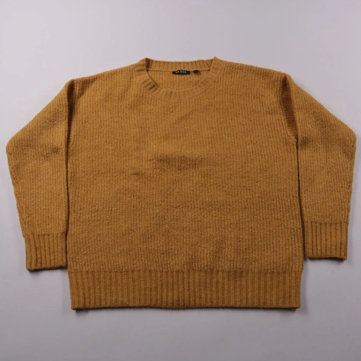 Женский джемпер Blue Seven горчичного цвета с круглым вырезом и фактурной вязкой. Подойдёт для повседневной носки и офисных образов в прохладную погоду, хорошо сочетается с джинсами и юбками. Мягкий трикотаж тянется и комфортно садится по фигуре.