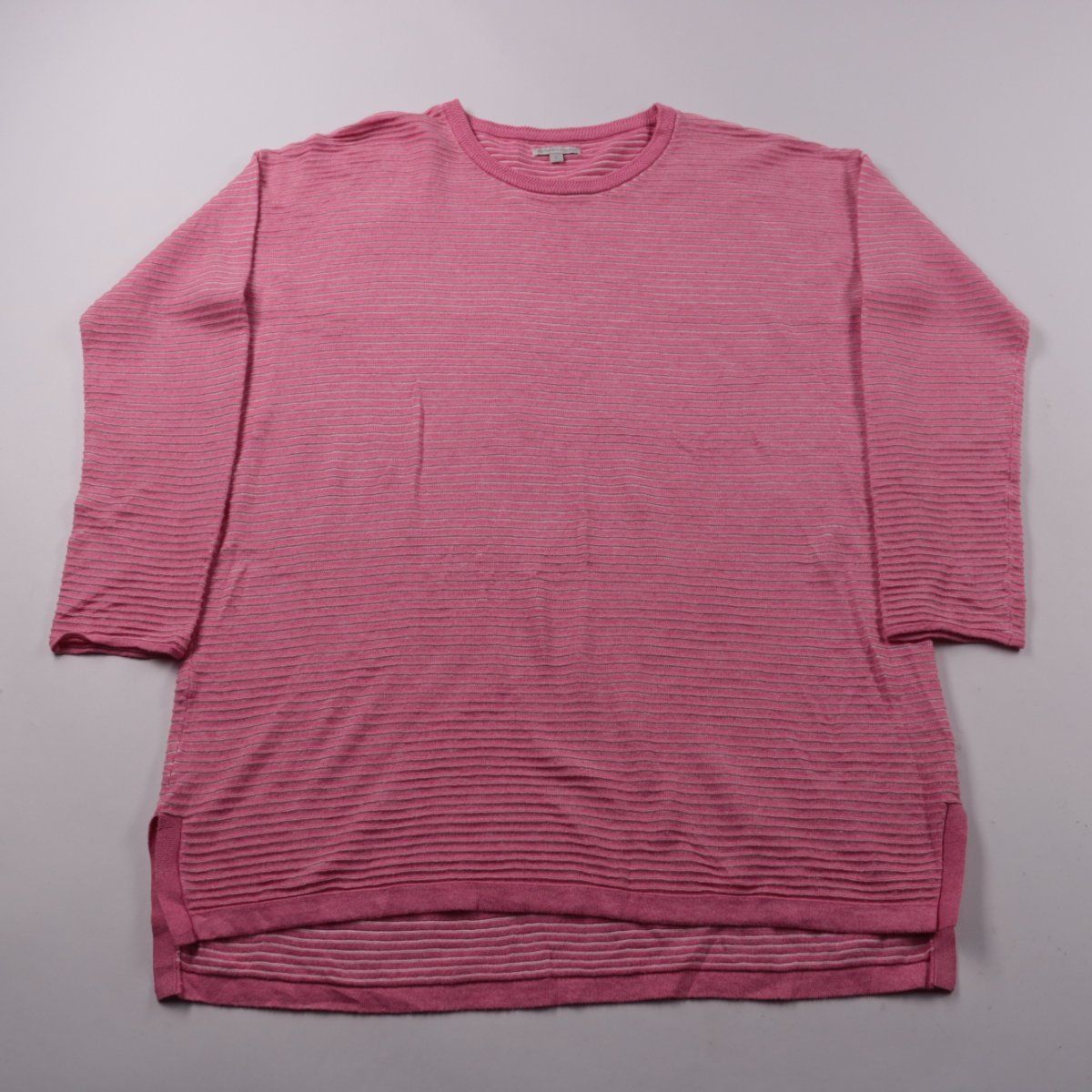 Женский джемпер Target Collection из хлопка, розового цвета с фактурной горизонтальной вязкой и круглым вырезом. Подойдёт для повседневной носки и офиса в прохладную погоду, хорошо сочетается с джинсами и брюками. Практичен тем, что мягкий и дышащий, удобно носить слоями.